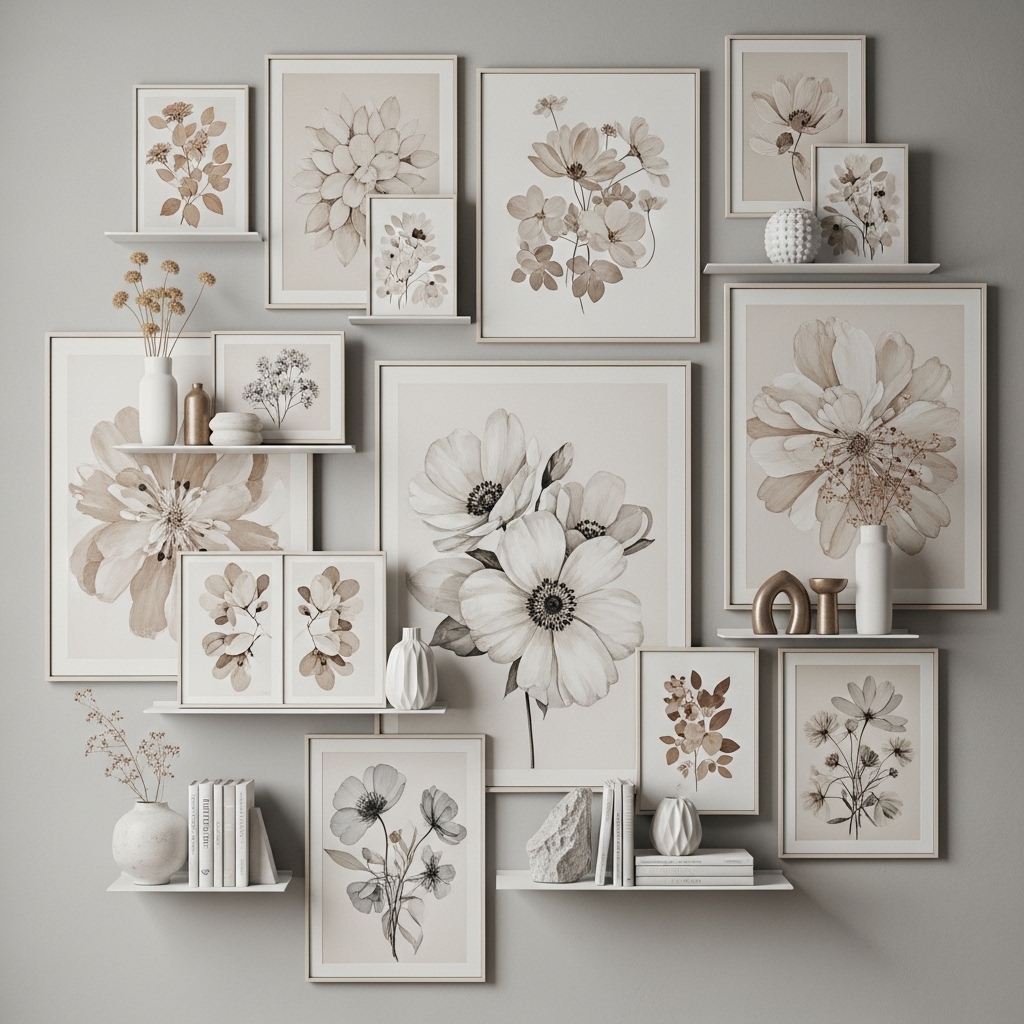 4. Framed Floral Gallery Wall With Soft Neutrals