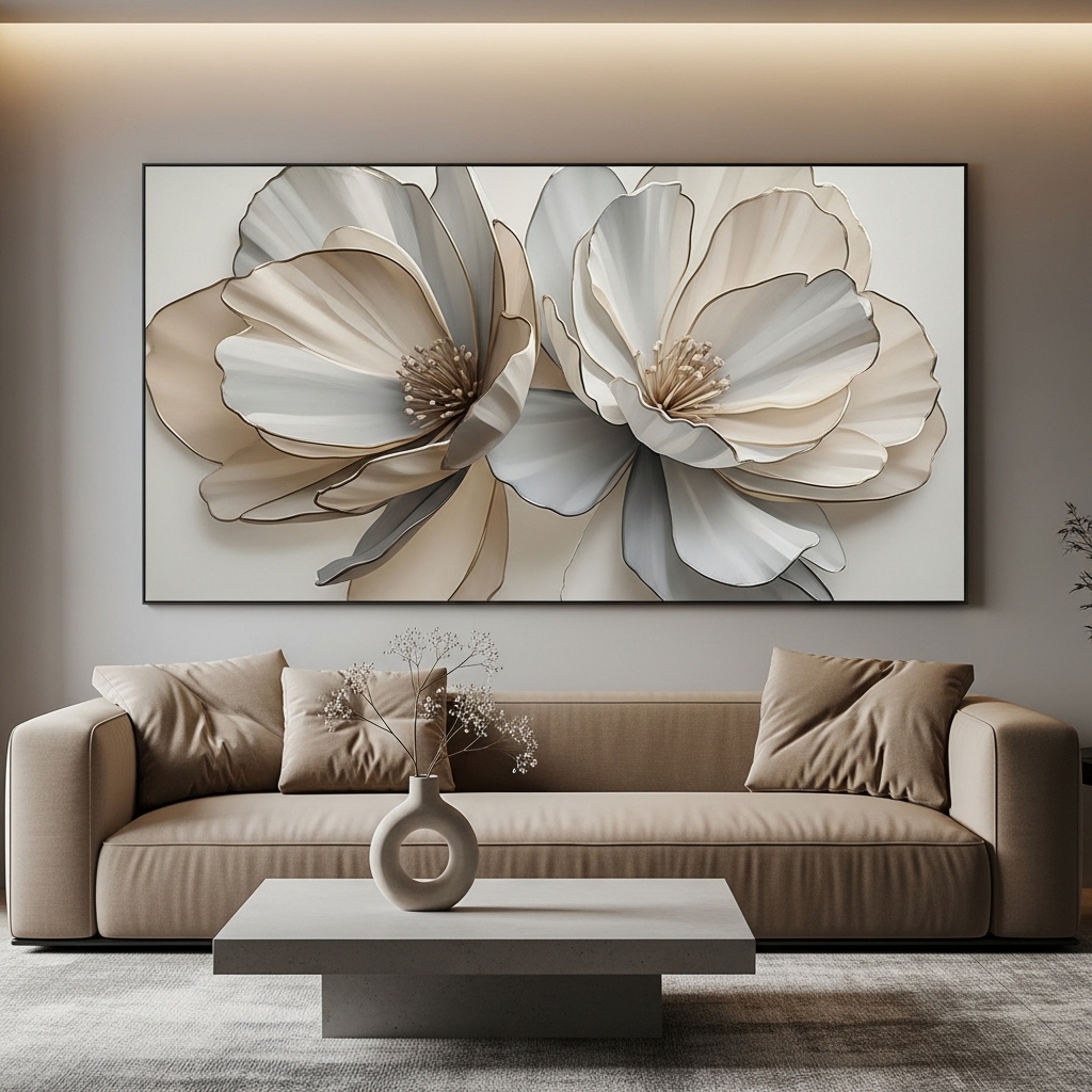 Beige gray flower wall art has become a go-to choice for homeowners who want a balanced aesthetic—something that feels calm without being boring, and stylish without overwhelming the room. The neutral palette works across modern, minimalist, boho, and even transitional interiors, making it one of the most versatile decor directions today.