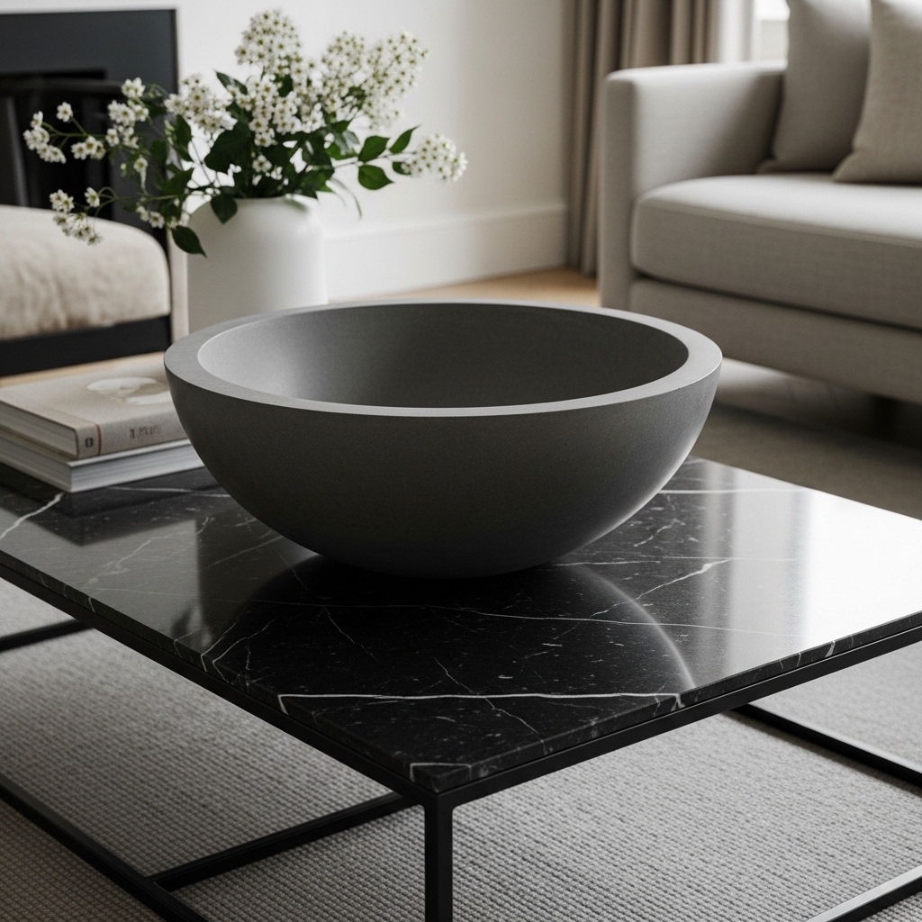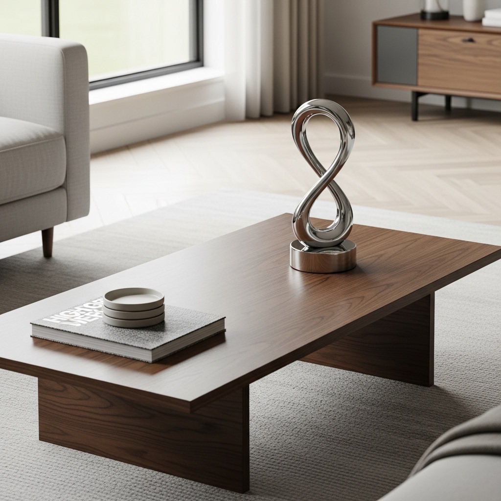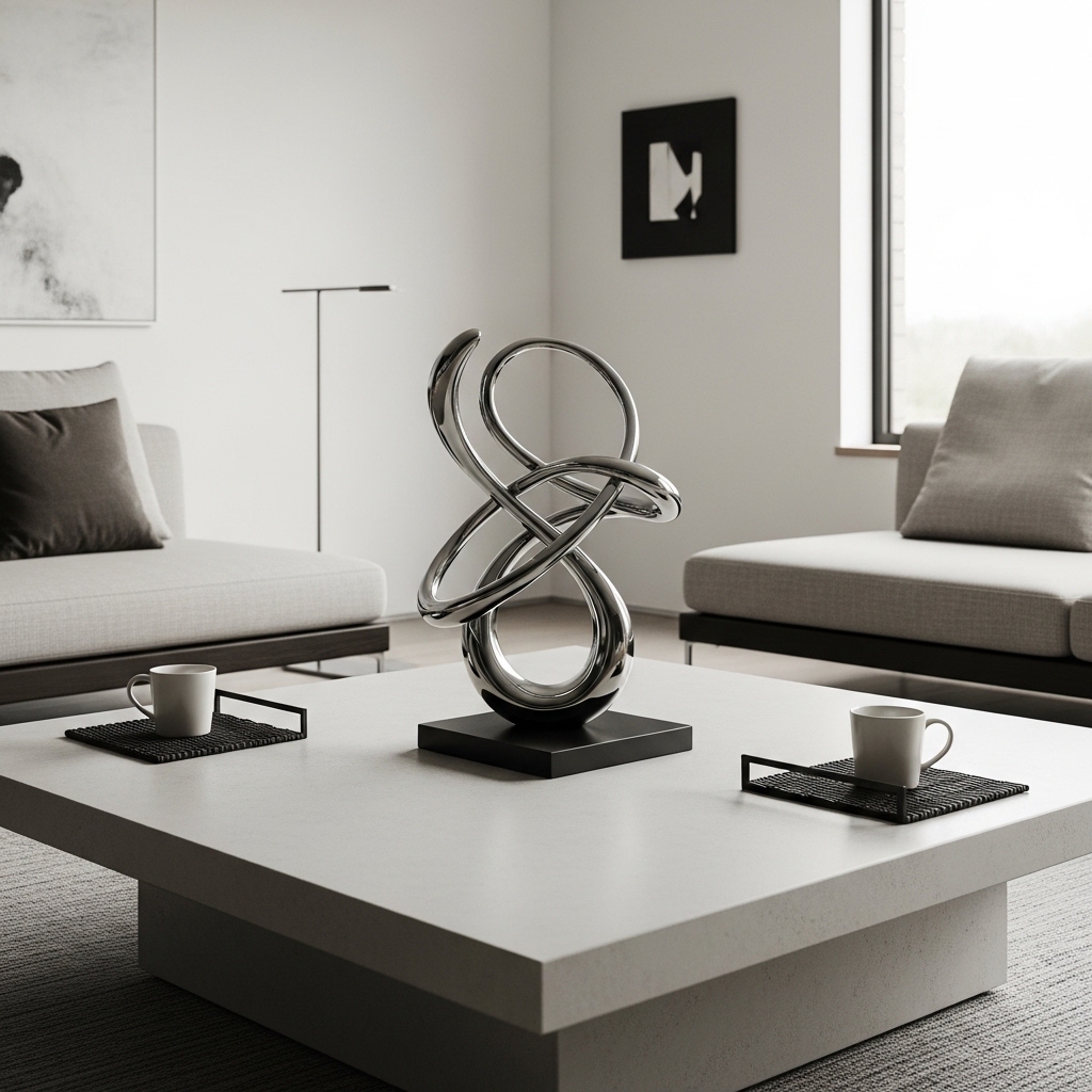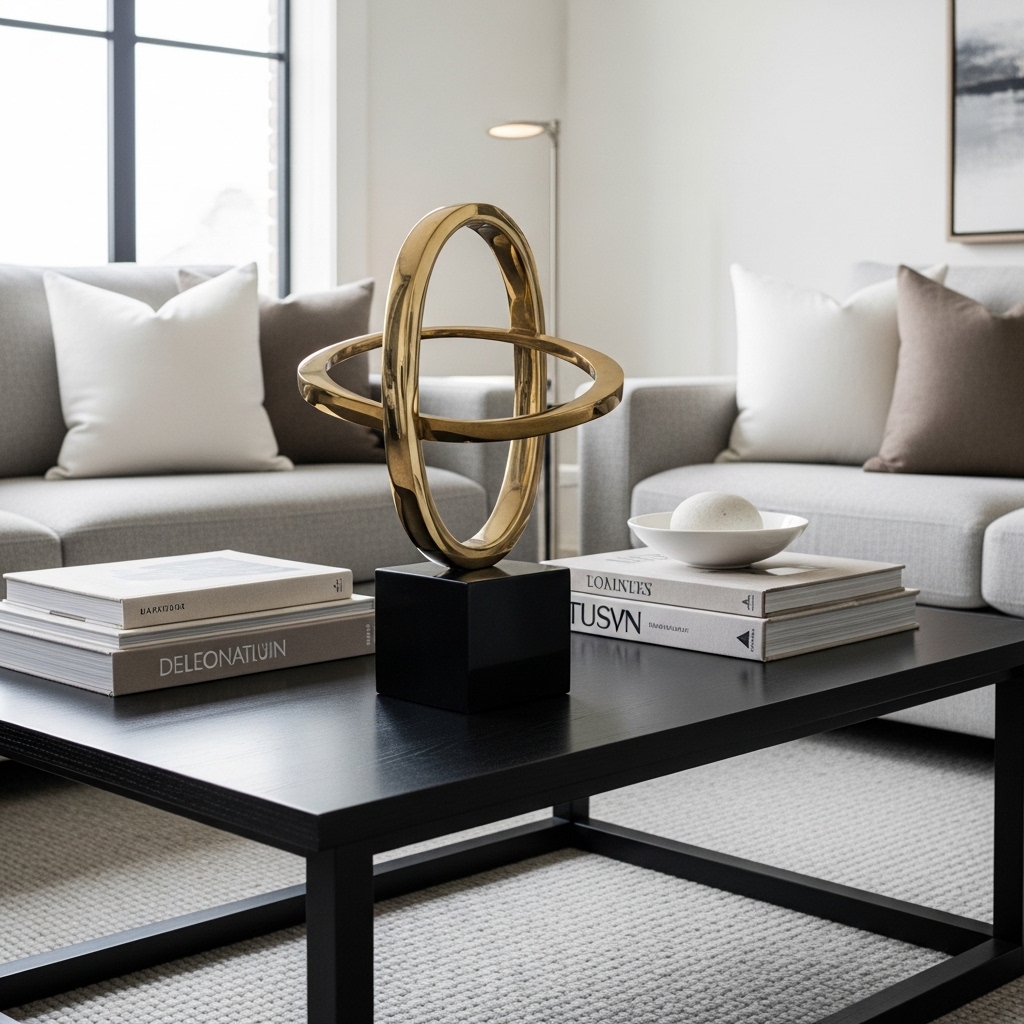 Place a bold sculptural piece in the center and leave surrounding space empty. Choose abstract or geometric forms.