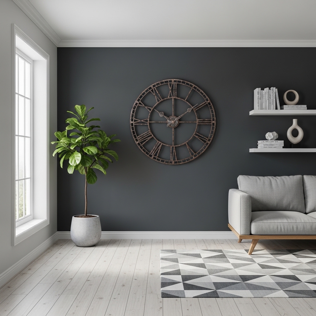 This works because it combines functionality and design in one object, reducing the need for additional wall decor while still completing the space visually. It brings structure, balance, and practicality, especially in rooms where excessive decoration feels cluttered. Many people choose clocks that are too small, which fail to anchor the wall properly.