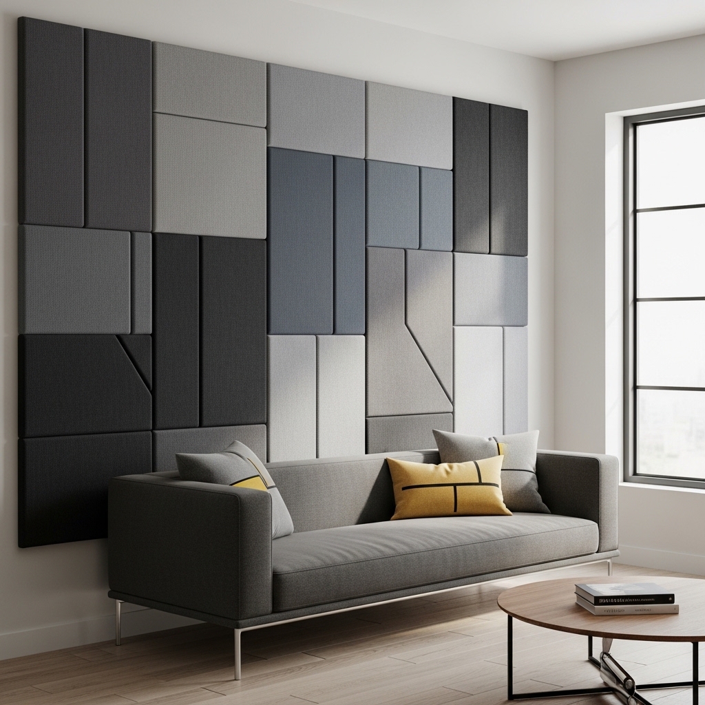 Install padded fabric panels on a main wall, often behind beds or seating areas. Choose neutral or soft-toned fabrics to maintain a calm aesthetic. Ensure panels are evenly aligned and securely mounted.