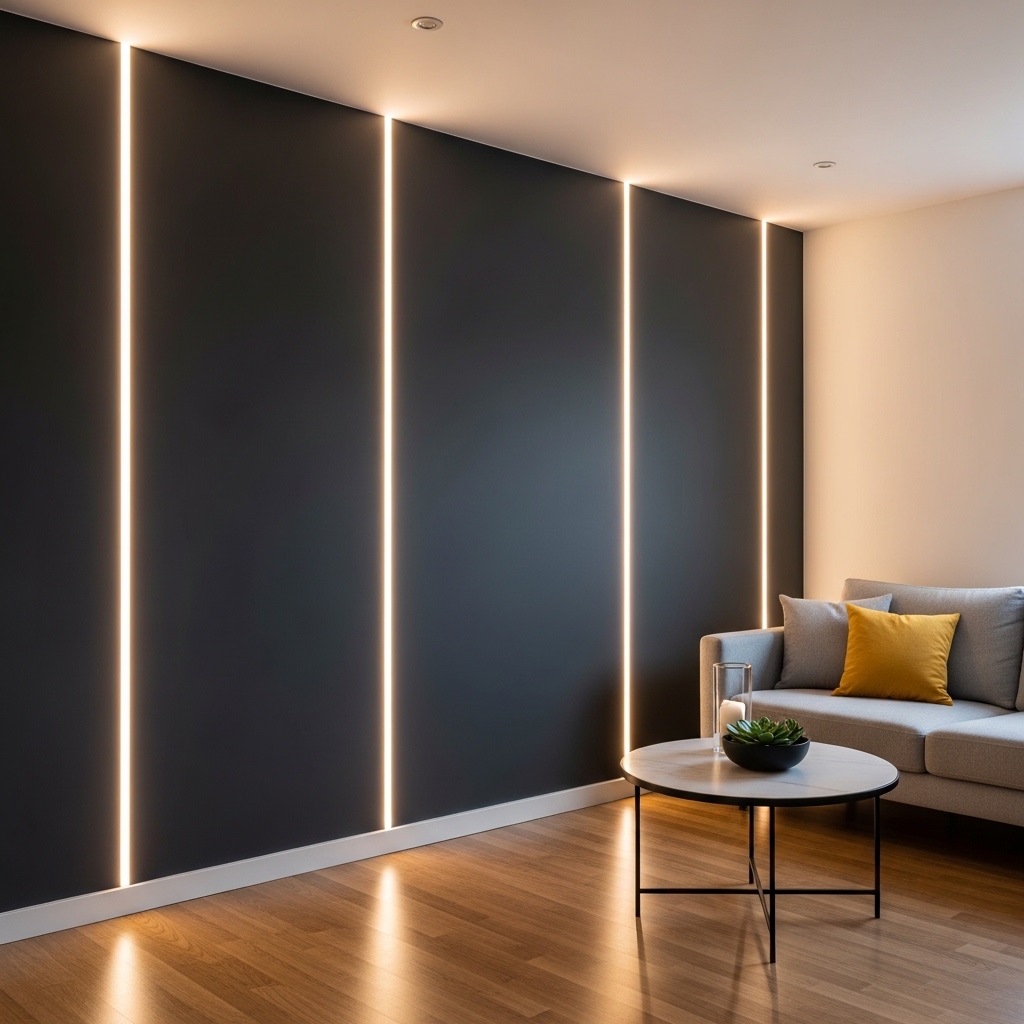 Install LED strips, wall washers, or backlit panels. Keep lighting warm and subtle.