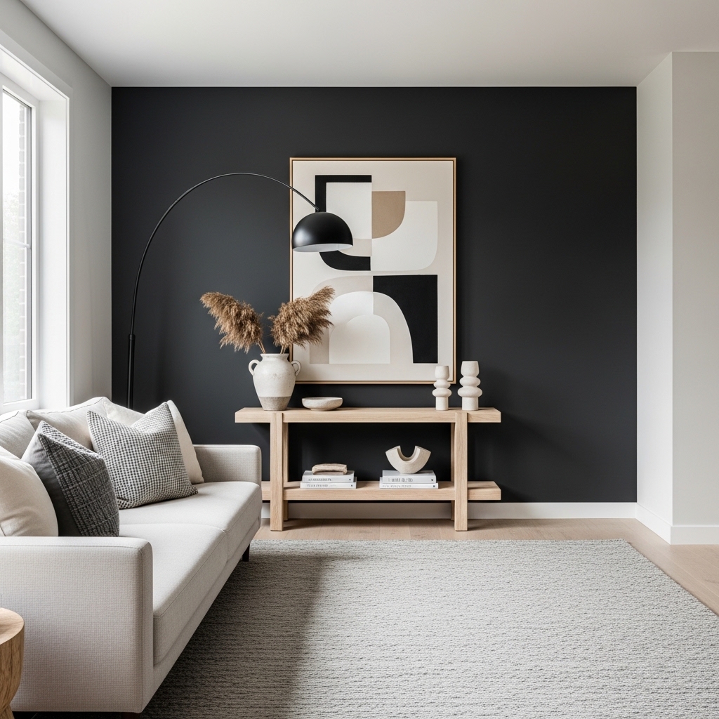 This works because neutral dark tones add depth without visual chaos, making the room feel more structured and calm. Unlike bright colors, they remain timeless and easier to pair with changing decor styles. Many people make the mistake of selecting overly bold colors that overpower small or medium spaces.