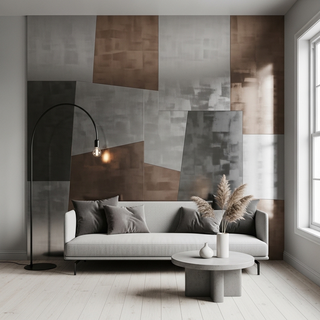 Use metallic paint or panels in soft gold, silver, or bronze tones. Apply on a single focal wall only.