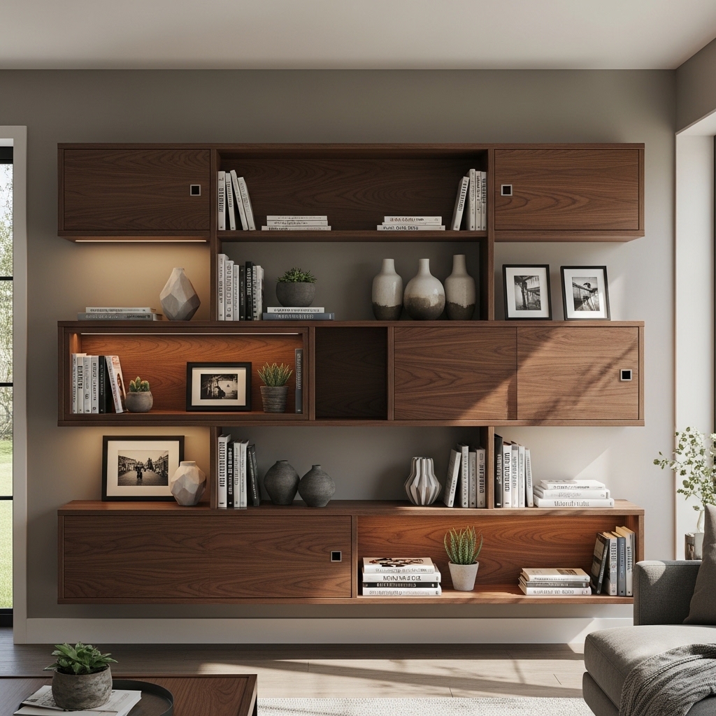 This works because it combines functionality and design without needing extra furniture. Overcrowding shelves reduces visual appeal.