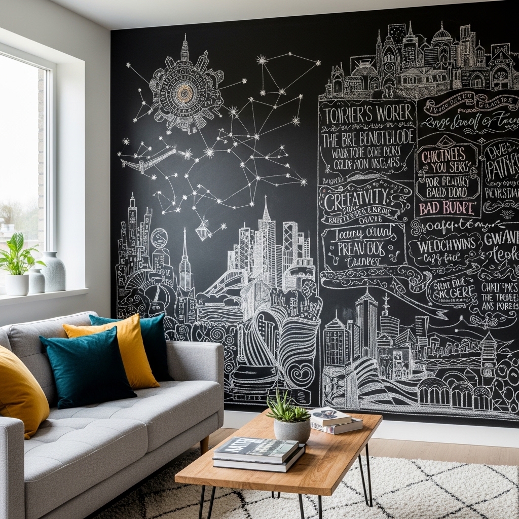 Apply chalkboard paint to one wall for writing, drawing, or planning. Keep the rest of the room neutral for balance.