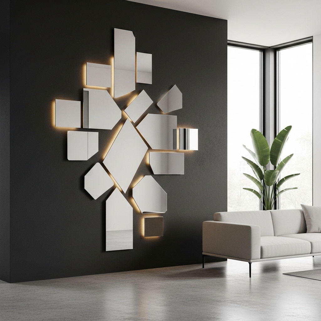 Install multiple mirrors in a structured or grid layout. Keep spacing equal and frames consistent for balance.