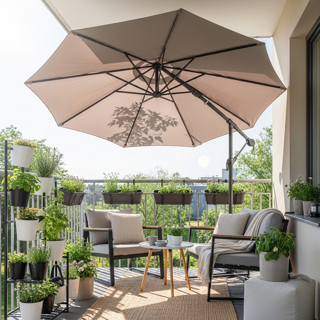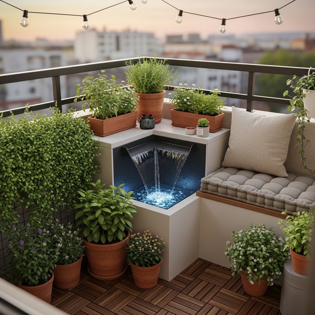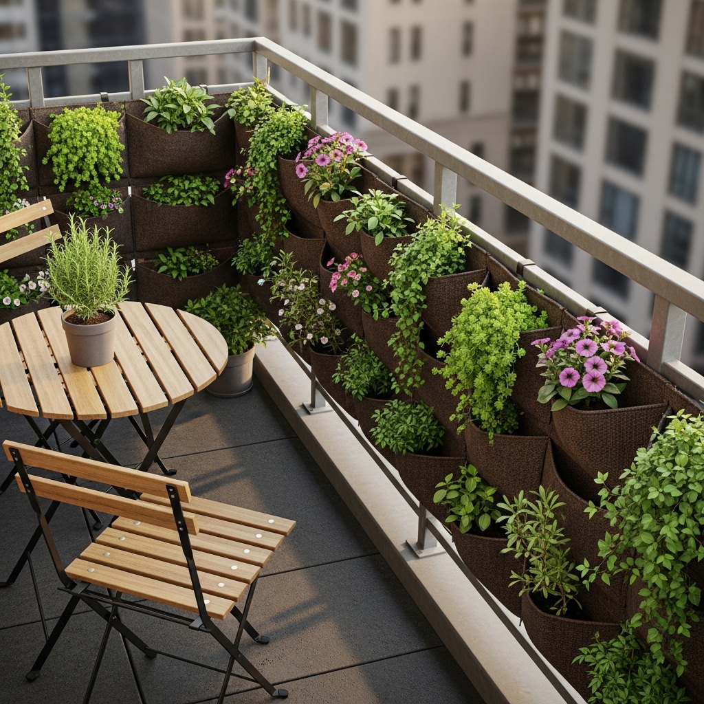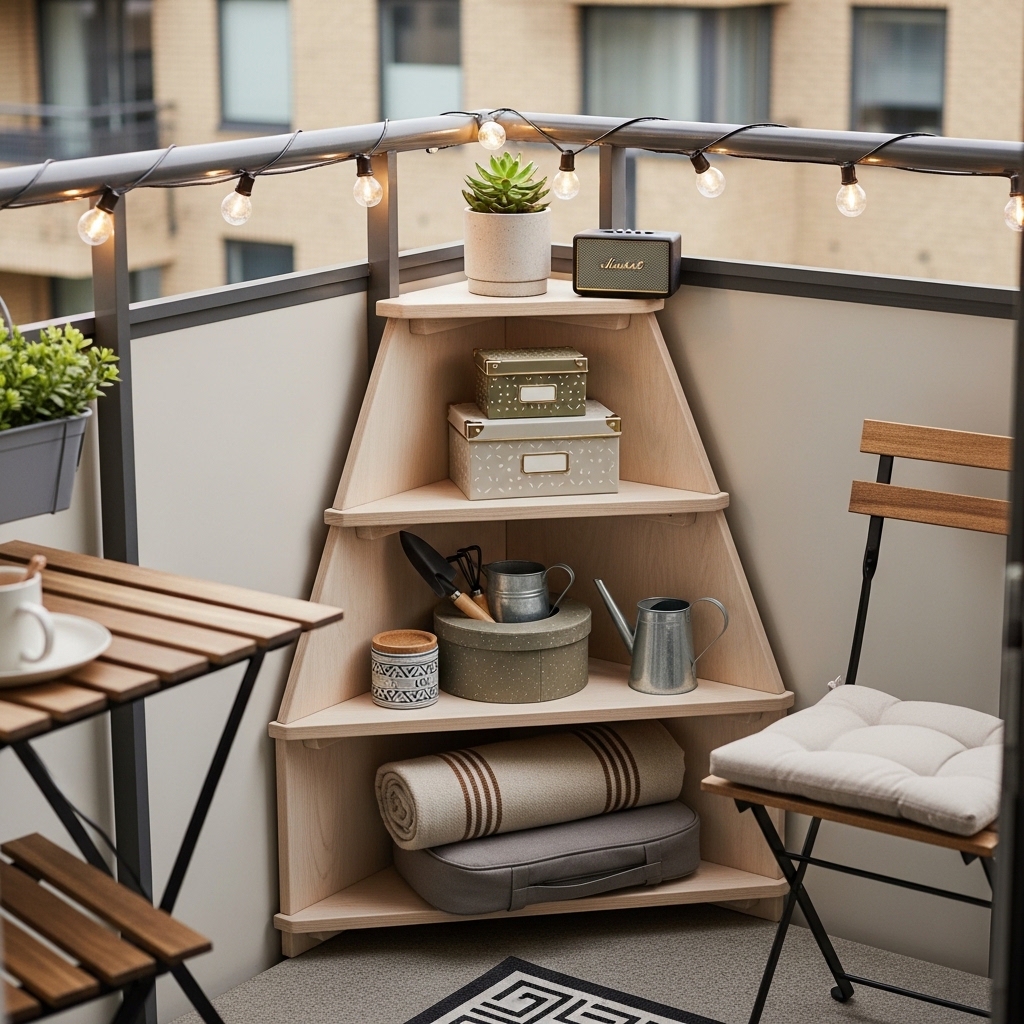 This works because corners are often wasted space, and using them efficiently frees up the rest of the balcony. A common mistake is leaving corners empty while overcrowding the center.