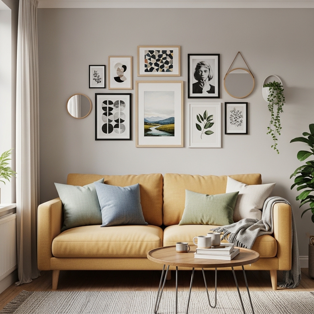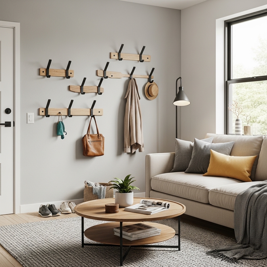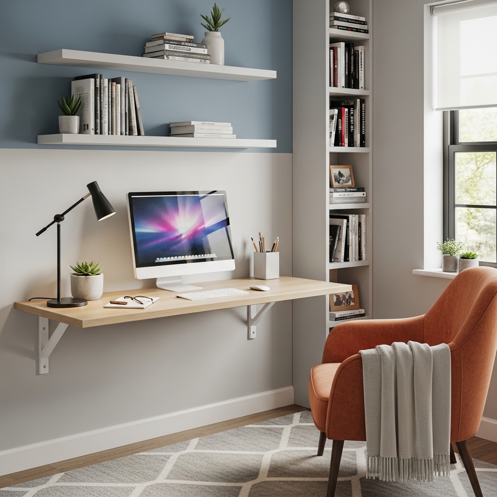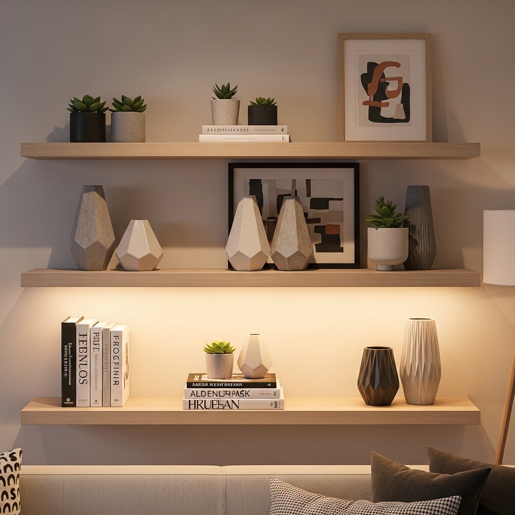 How to apply: Install shelves above sofas or desks. Keep items spaced out.