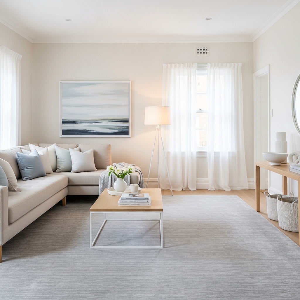 How to apply: Use white, beige, or soft gray on walls and large furniture. Add subtle color through accessories.