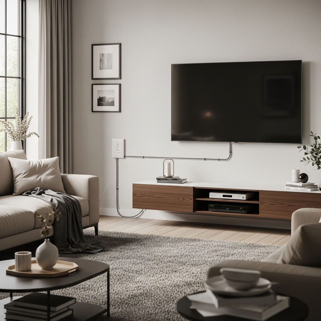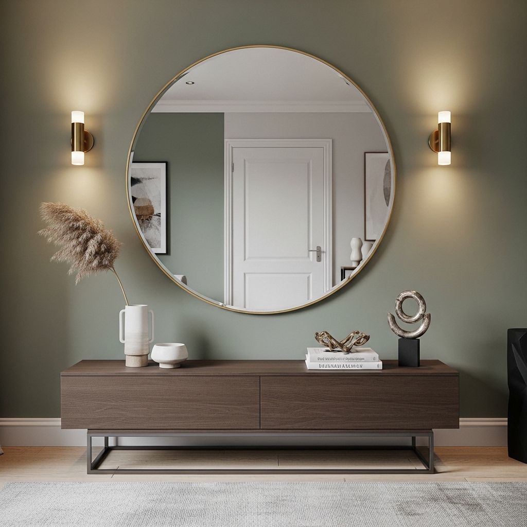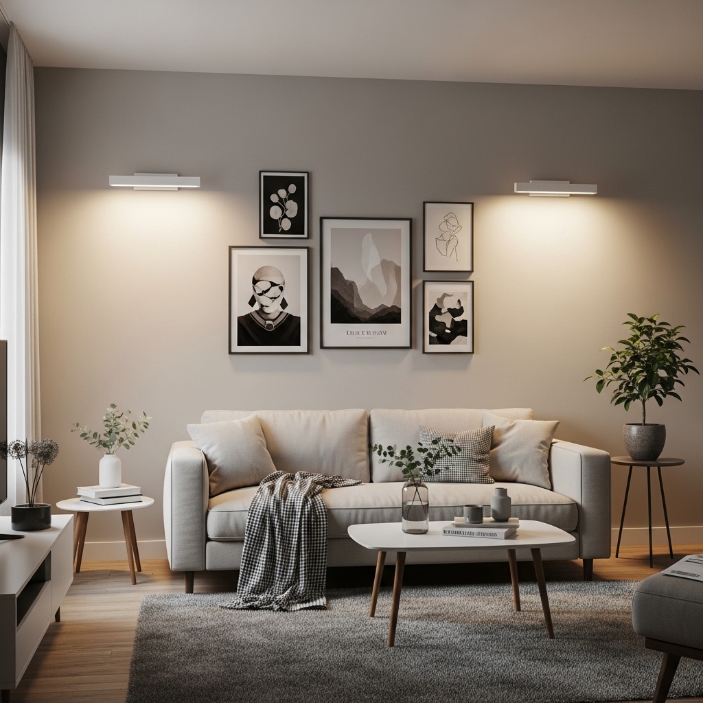 How to apply: Pair with a slim console or floating shelf. Hide wires.