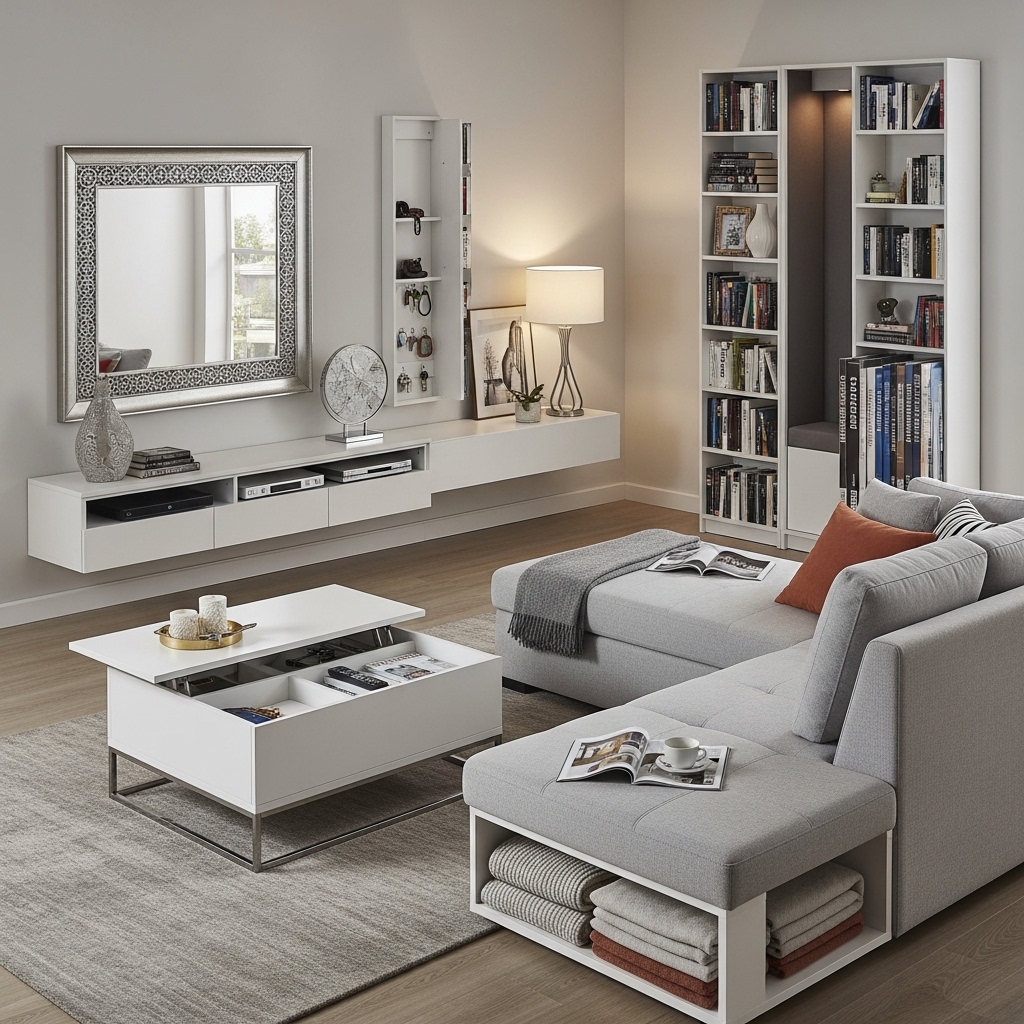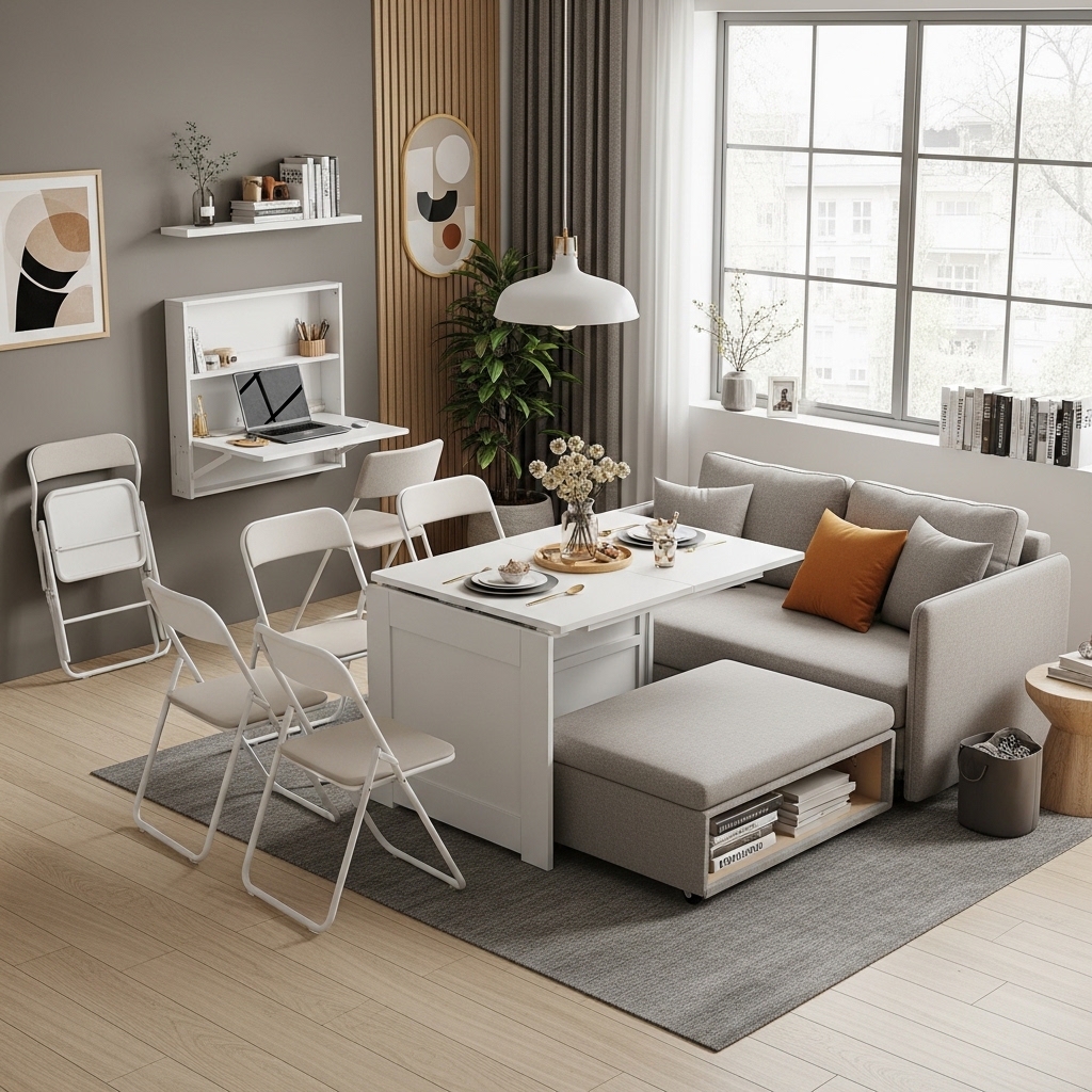 How to apply: Use ottomans with storage, nesting tables, or sofa beds.