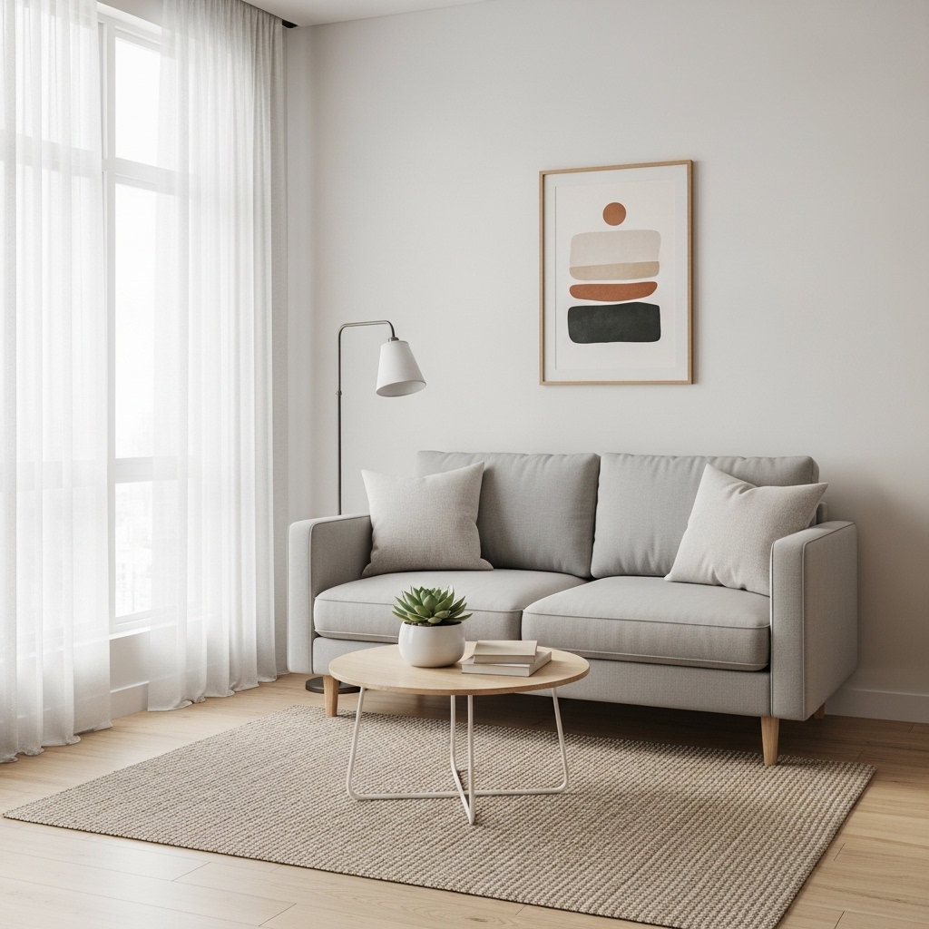 How to apply: Float the sofa slightly away from walls and keep walking paths clear. Use fewer but well-sized pieces.