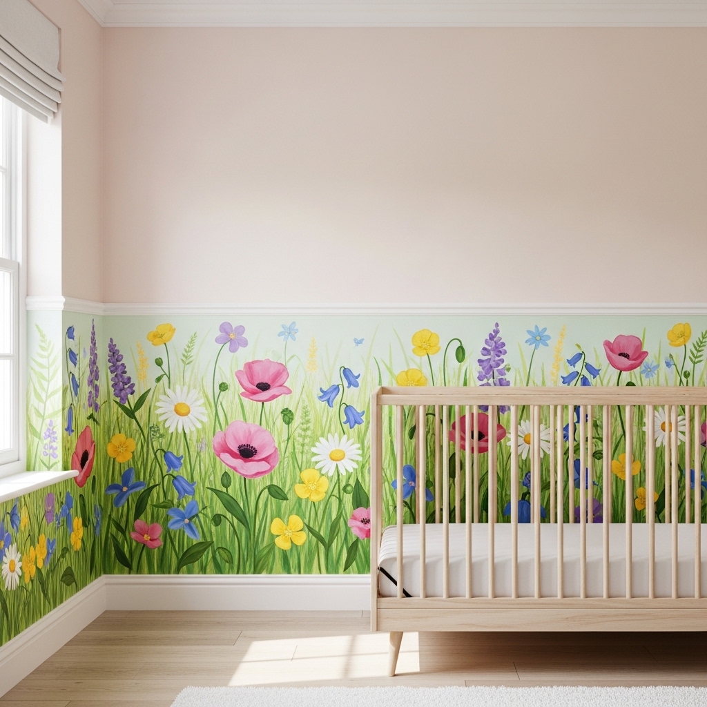 9. Paint a Meadow of Wildflowers Below Chair Rail Height
