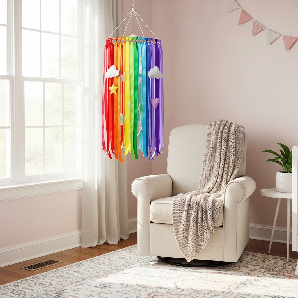 6. Install a Rainbow Ribbon Mobile Above the Glider