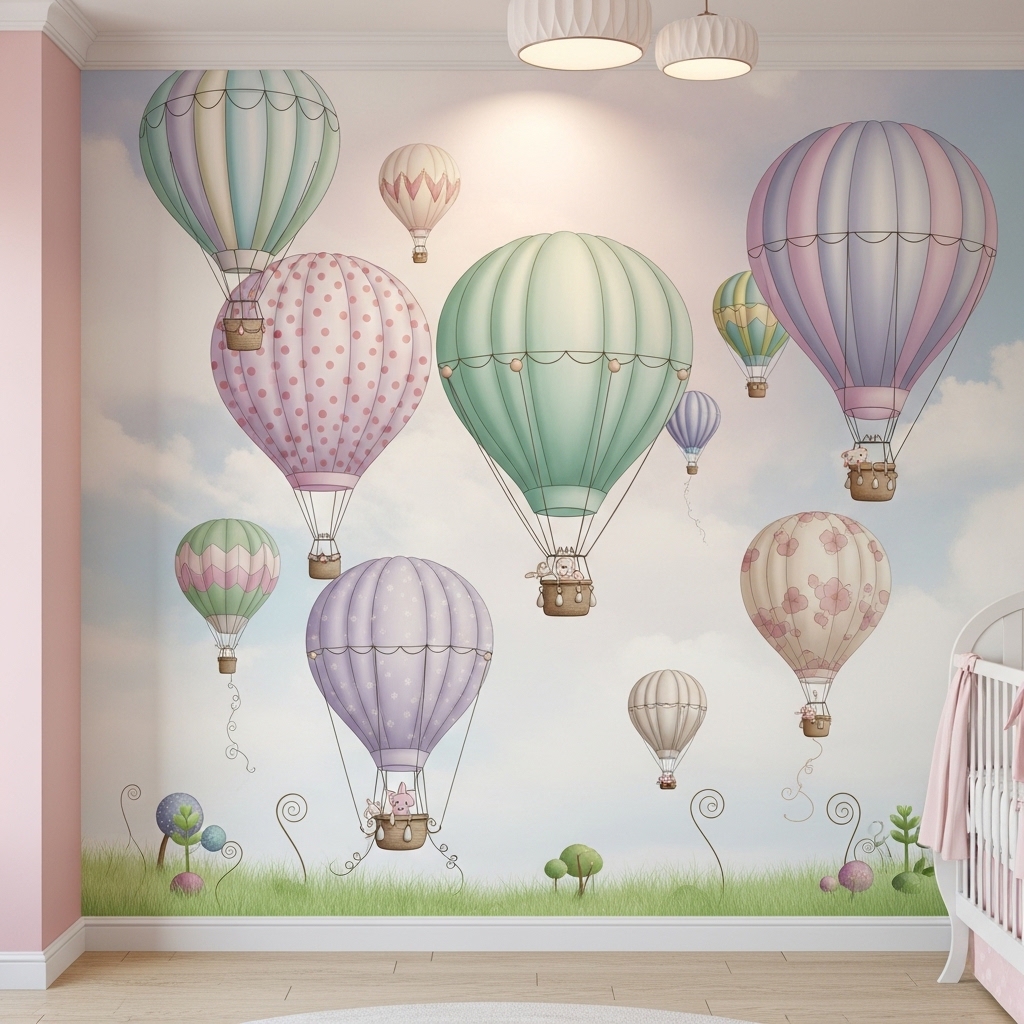 Mistake to Avoid: Do not paint balloons directly above the crib. Use a different wall for the main scene.
