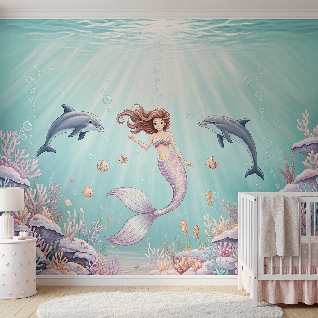 Mermaids offer fantasy without princess overload. The pastel ocean colors feel soft and calming for sleep.