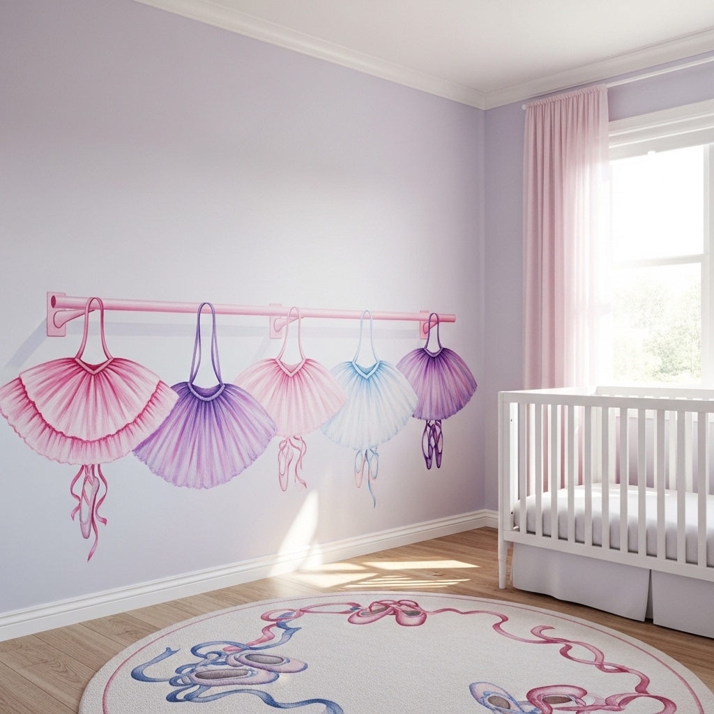 Paint a ballet barre across one wall at 24 inches high. Add a tutu hanging from the barre.