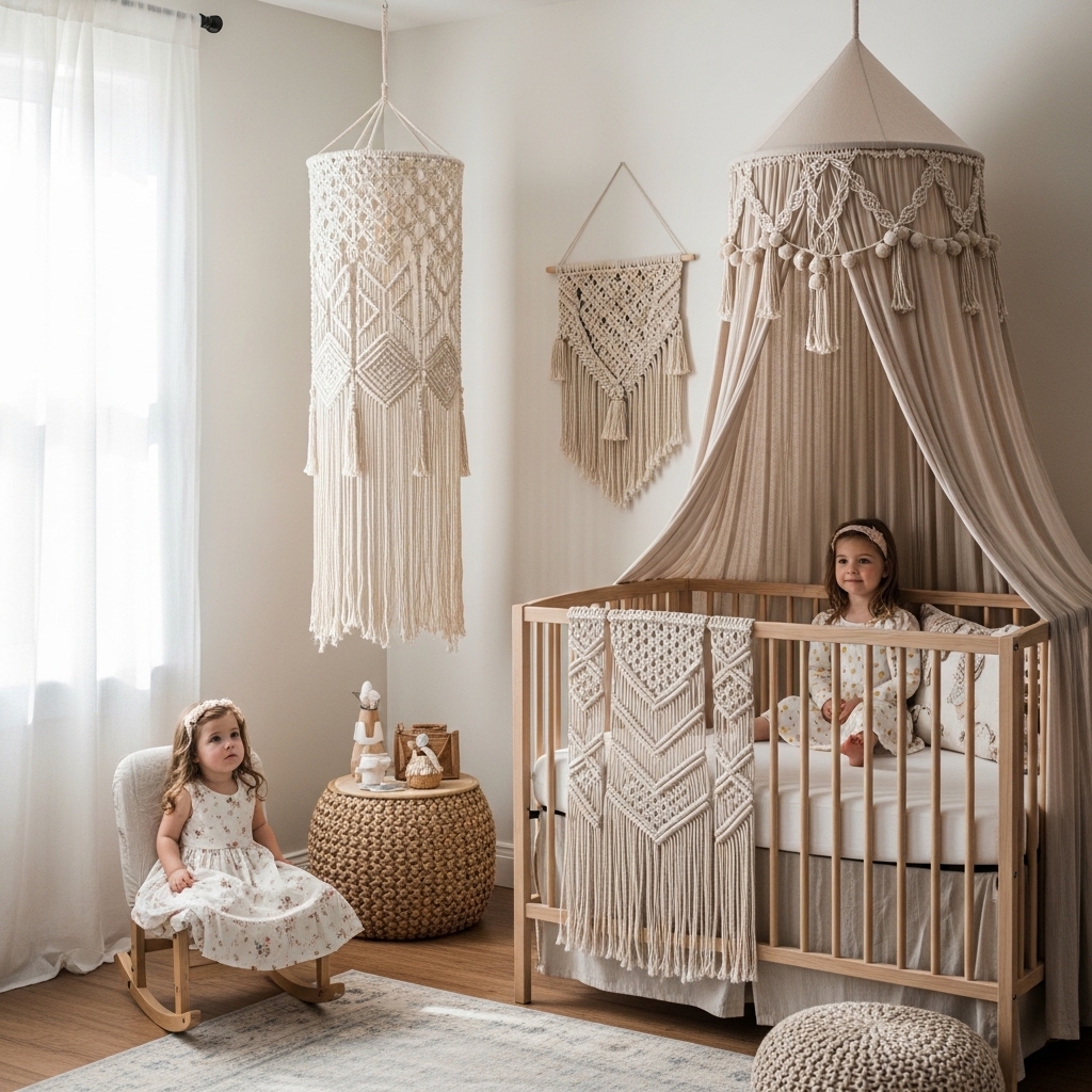 Pro Tip: Choose a macrame piece with wooden rings or beads. Natural materials add warmth to your nursery.