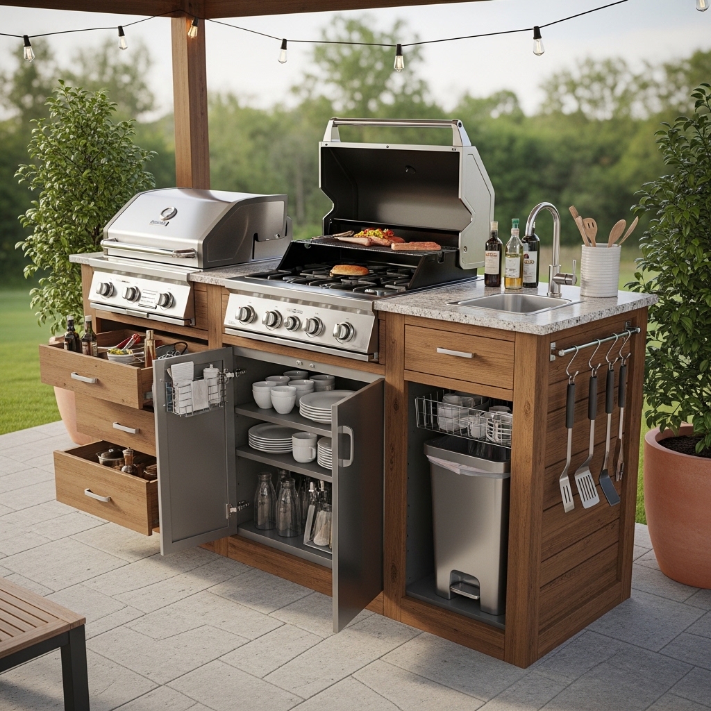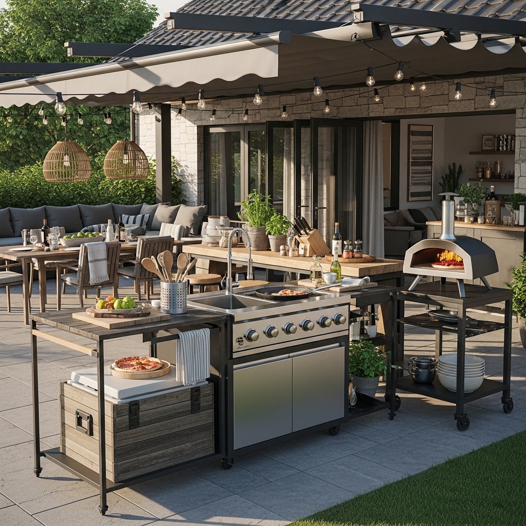This works because it mirrors efficient indoor kitchen design, making cooking faster and more organized. It also improves workflow during gatherings.