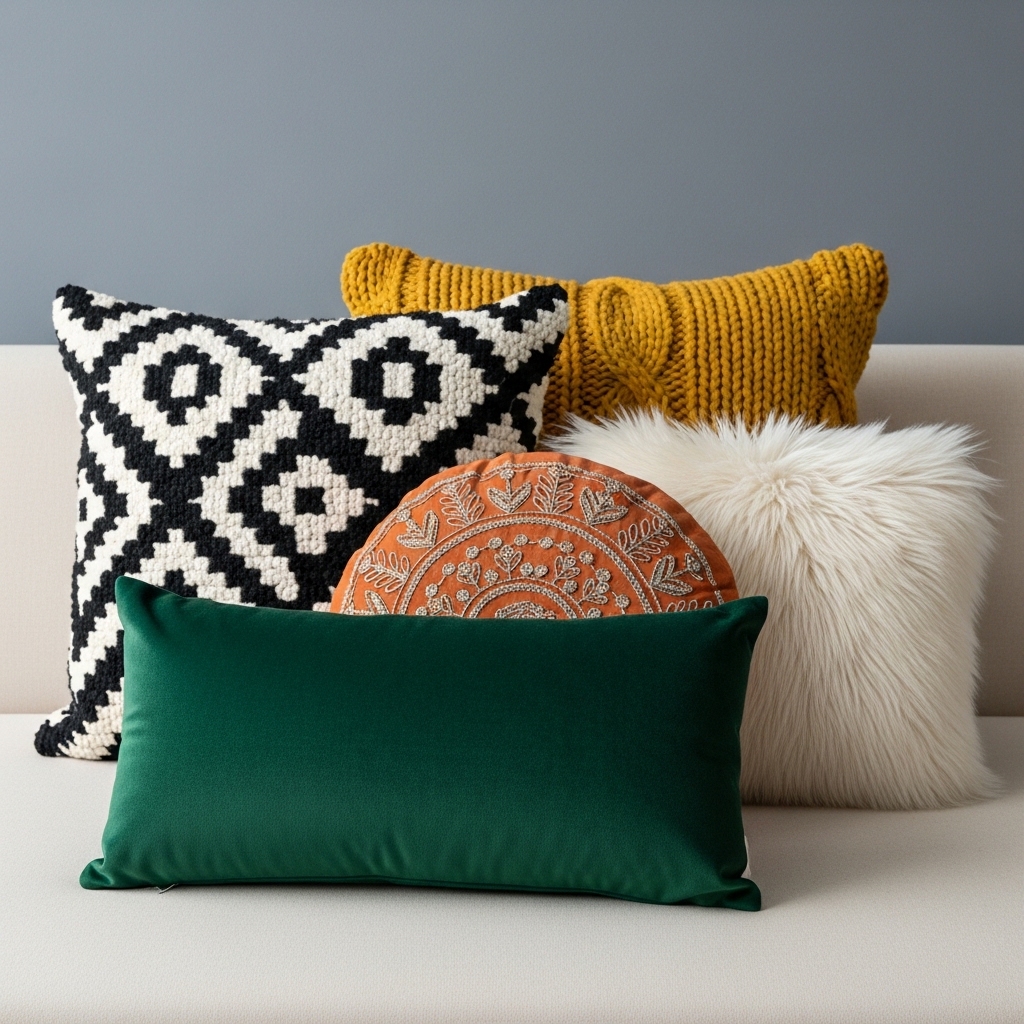 Throw pillows are one of the most cost-effective ways to refresh a bedroom. Mix textures like velvet, faux fur, or knit to create dimension while keeping comfort a priority.