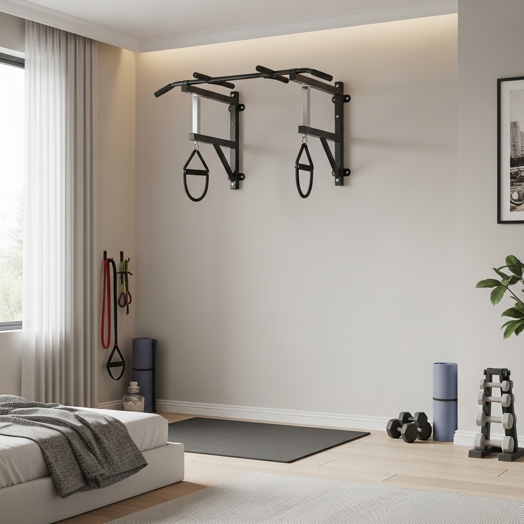 It can also double as a hanging space for resistance bands, TRX straps, or yoga accessories. Choosing a foldable or retractable pull-up bar keeps it discreet when not in use.