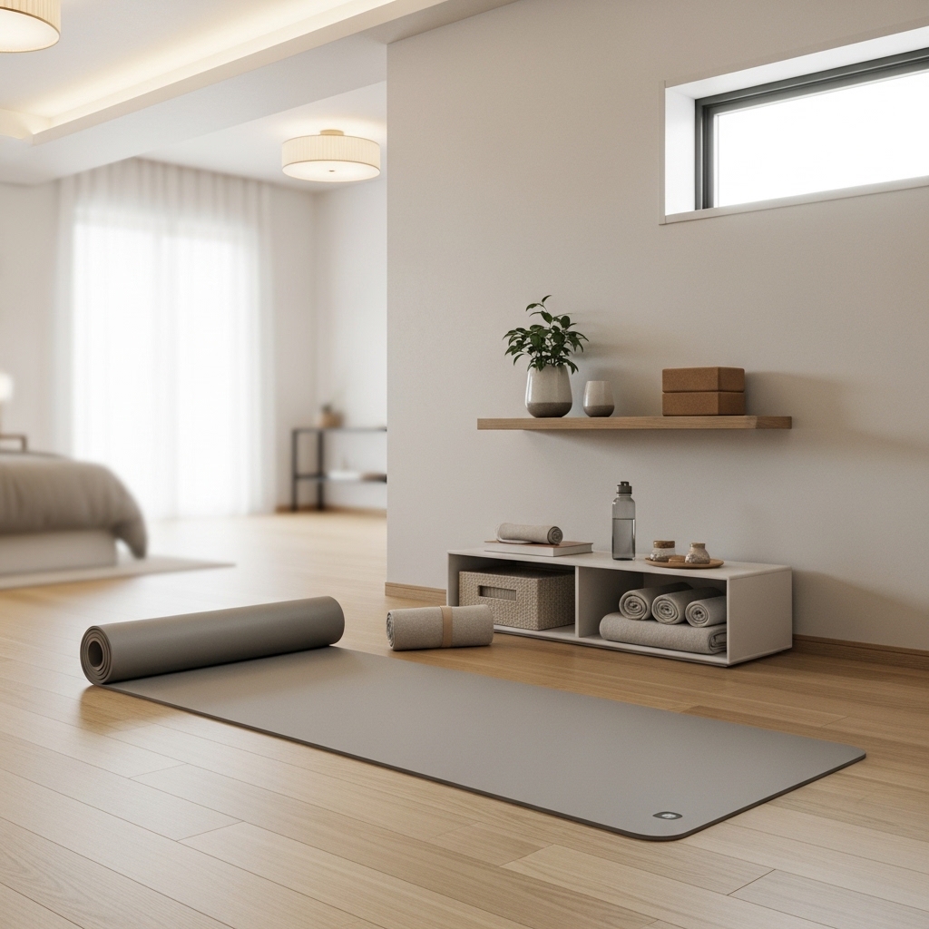 Pro Tip: Add a small basket or shelf nearby to store yoga blocks, straps, and towels for convenience.