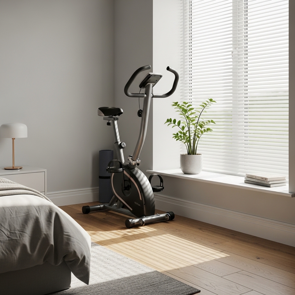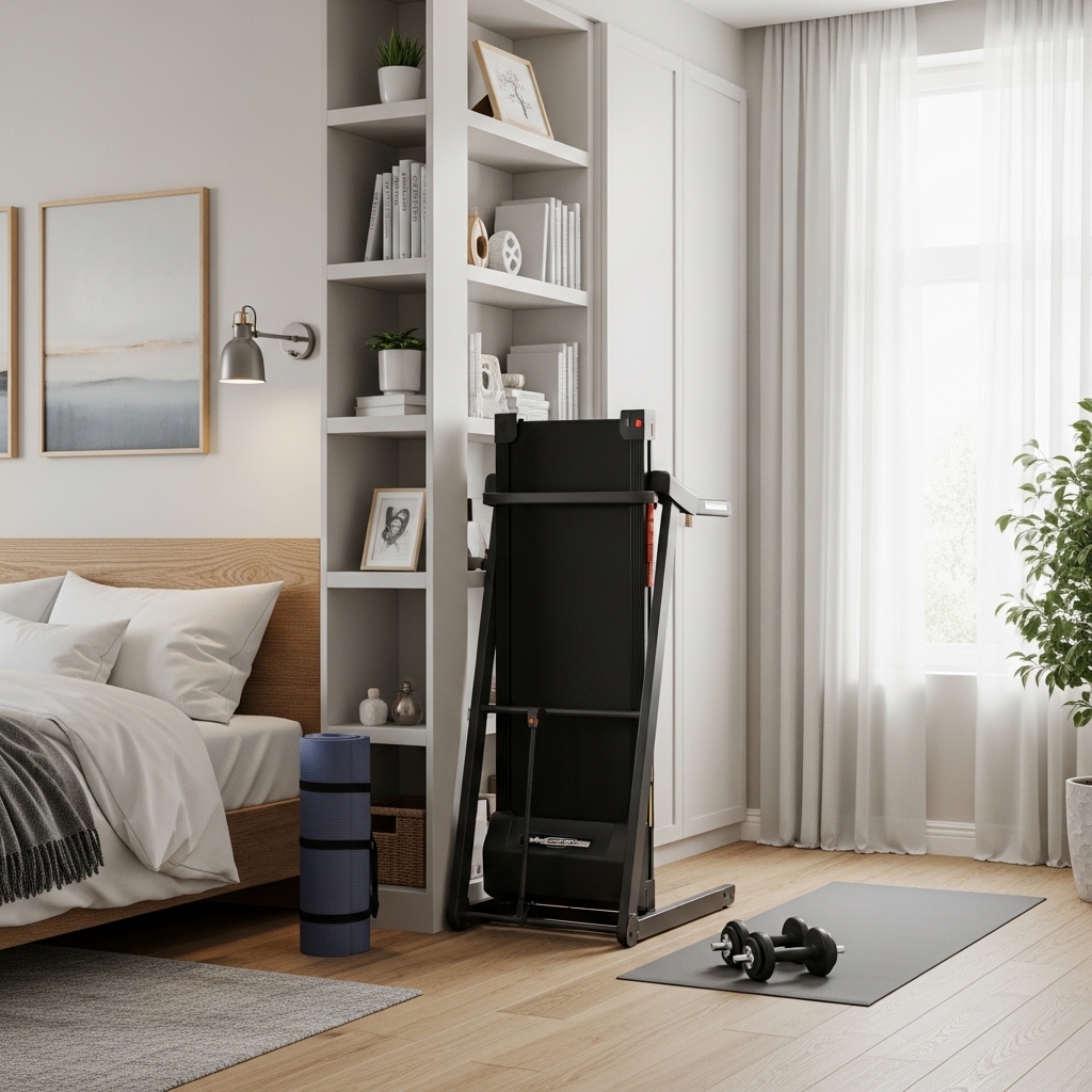 A foldable bike offers a full cardio experience without permanently occupying bedroom space. Once folded, it can be stored in a closet or corner, keeping the room organized and spacious.