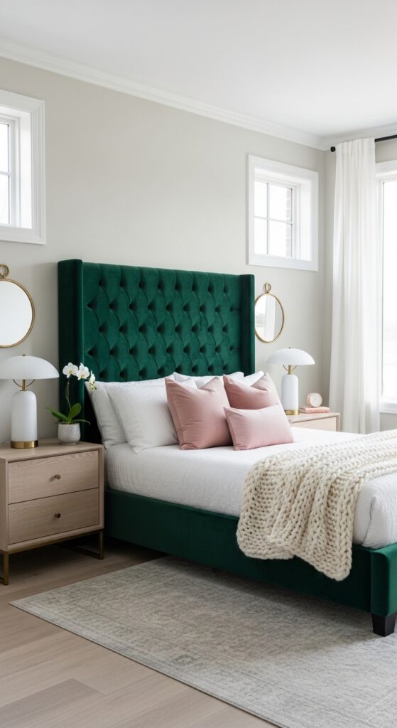 Pro Tip: Choose a tufted or velvet headboard to create an elegant and feminine bedroom look.