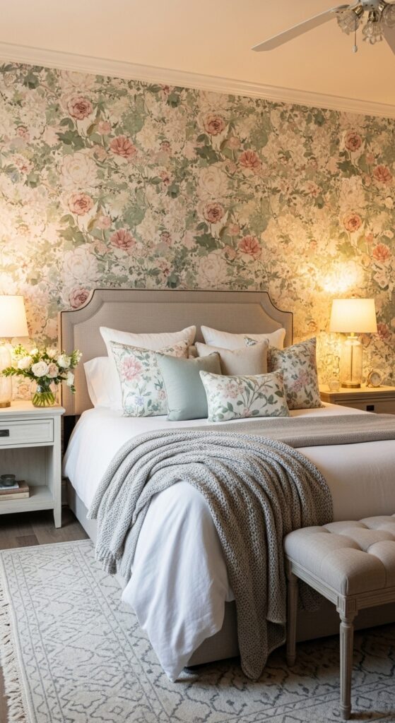 Soft pastel floral patterns can make the room feel romantic and peaceful.