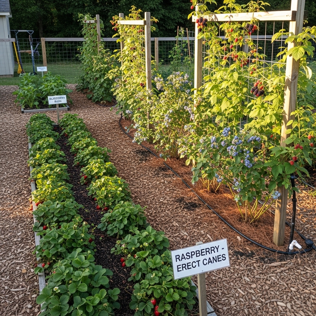 Plant strawberries, blueberries, and raspberries in separate zones instead of mixing them together. Each type has different spacing, soil, and care requirements, so grouping them simplifies maintenance and improves results.