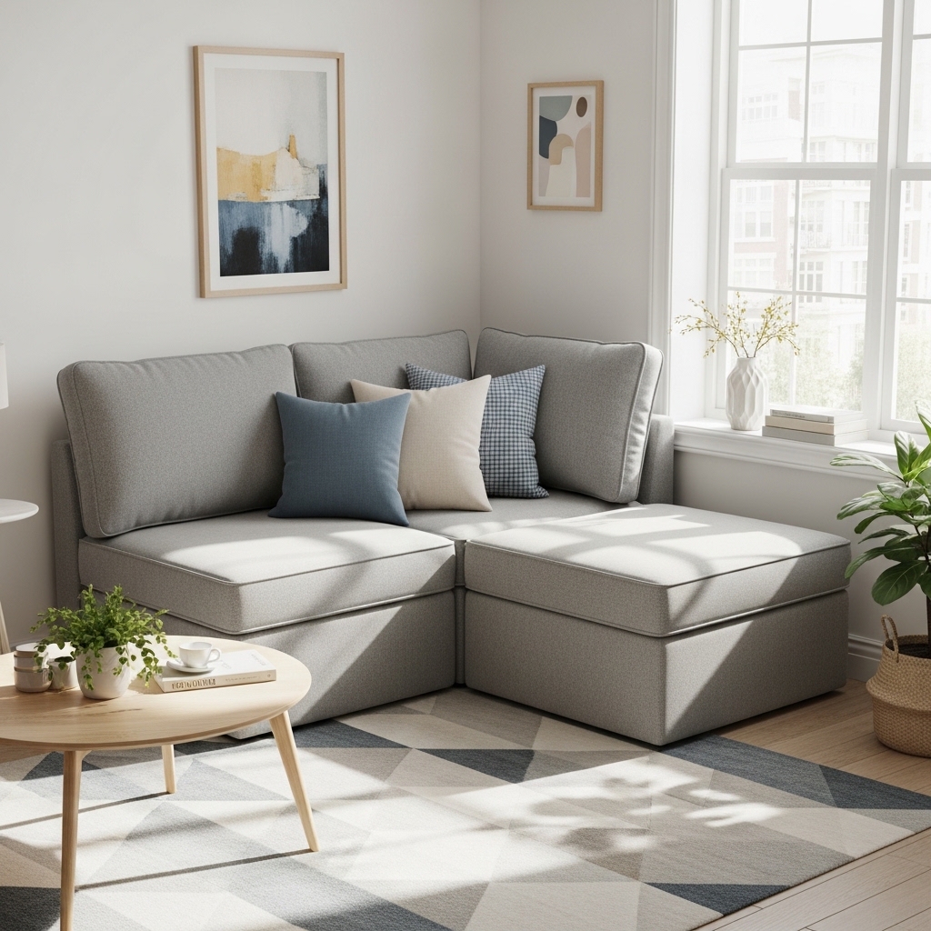 Modular sofas are made of separate pieces that can be rearranged. A small configuration works well in small rooms because it adapts to the space.