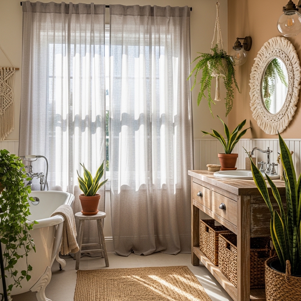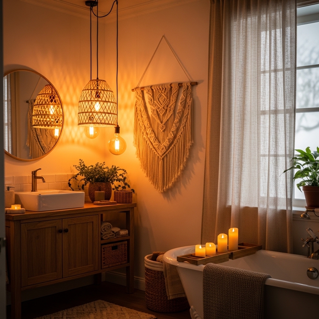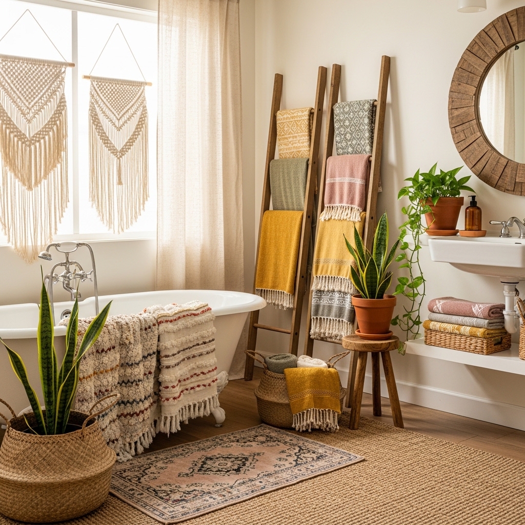 These ideas are designed for real bathrooms, including small apartments, shared spaces, and budget-friendly setups. Each one helps you create a relaxed boho look while keeping your bathroom functional, organized, and easy to maintain.