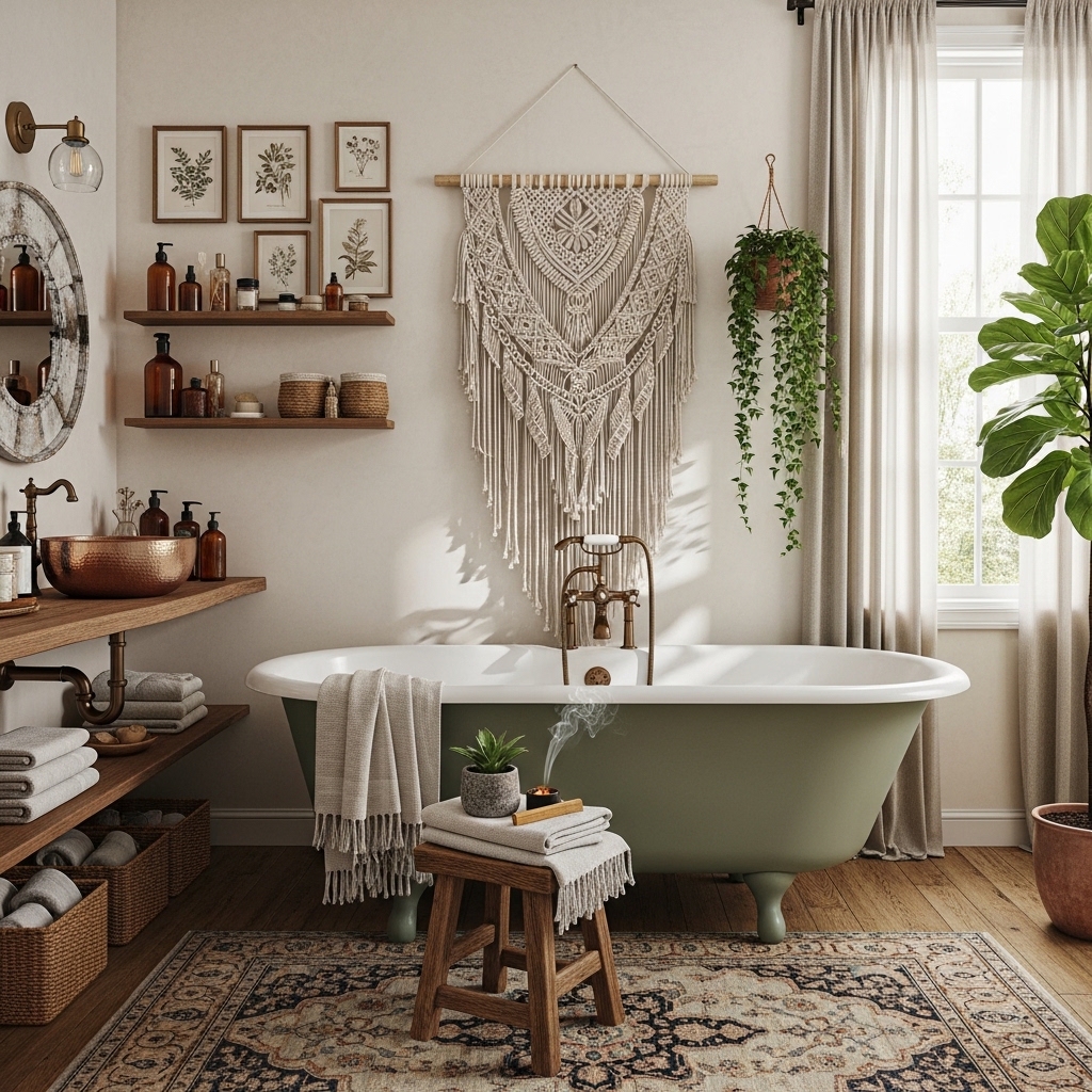 20 Boho Bathroom Decor Ideas That Create a Relaxed, Lived-In Space