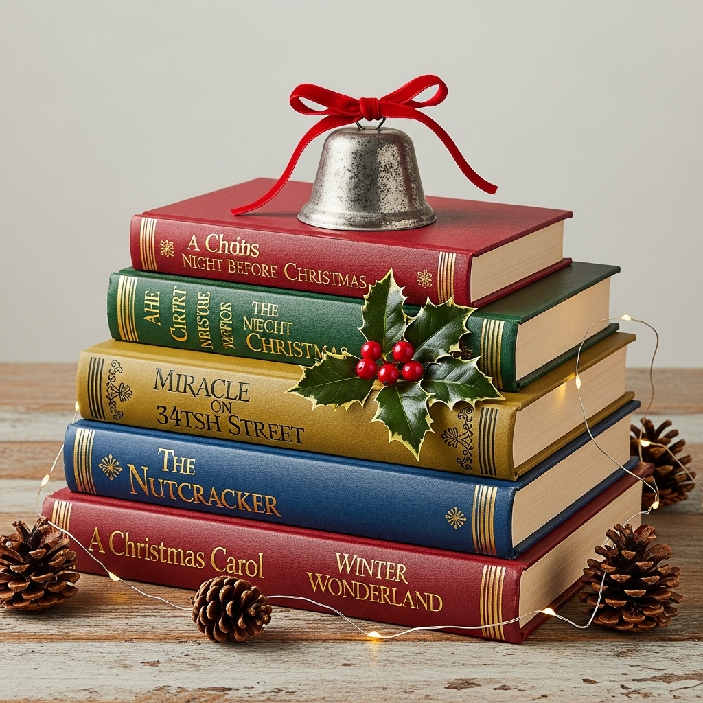 Stack Christmas books or classics like A Christmas Carol. Tie a ribbon around the stack and add a sprig of evergreen.