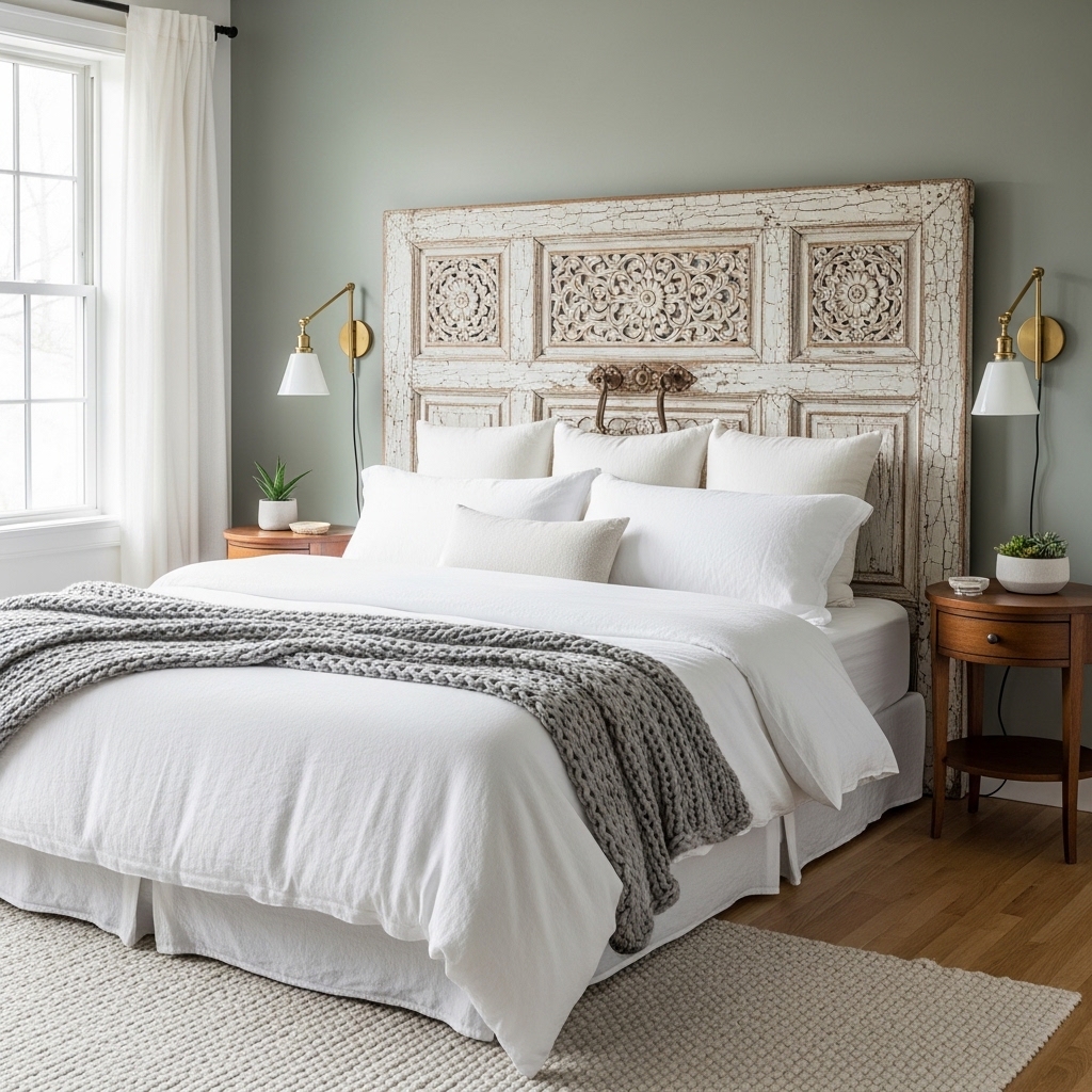 A door is not a headboard. Mount it on the wall and it becomes one.