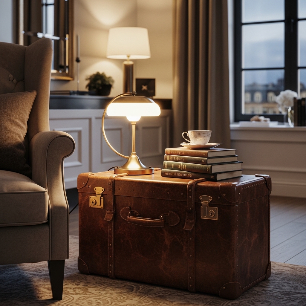 Find a vintage suitcase. Screw short legs into the corners. The suitcase will become a side table with storage inside.