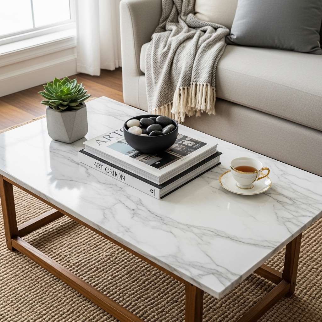 18. Buy a Used Coffee Table and Add a Marble Contact Paper