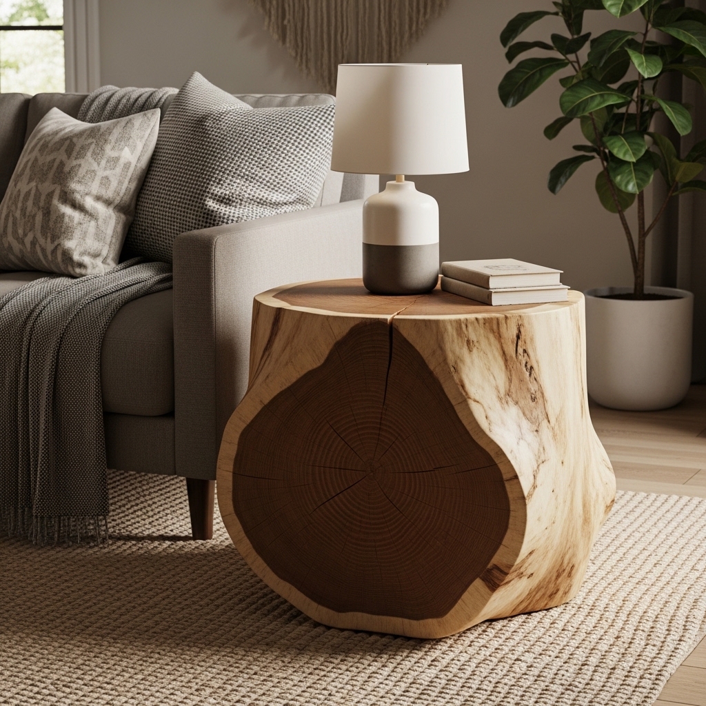 A tree stump is free. A tree stump side table is rustic.