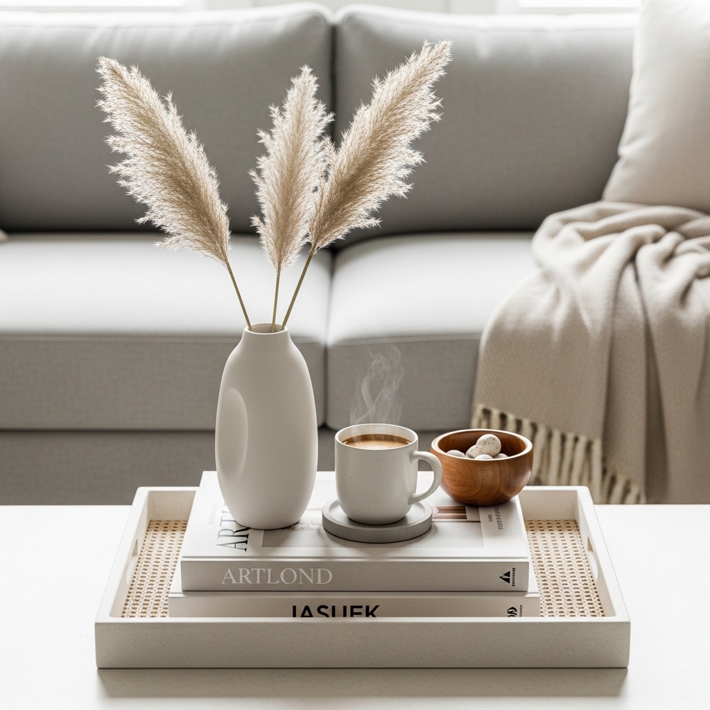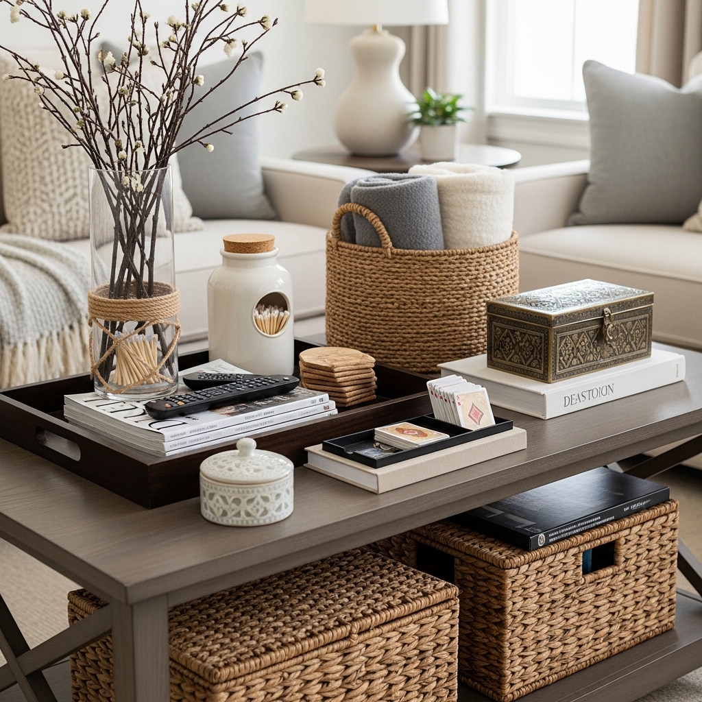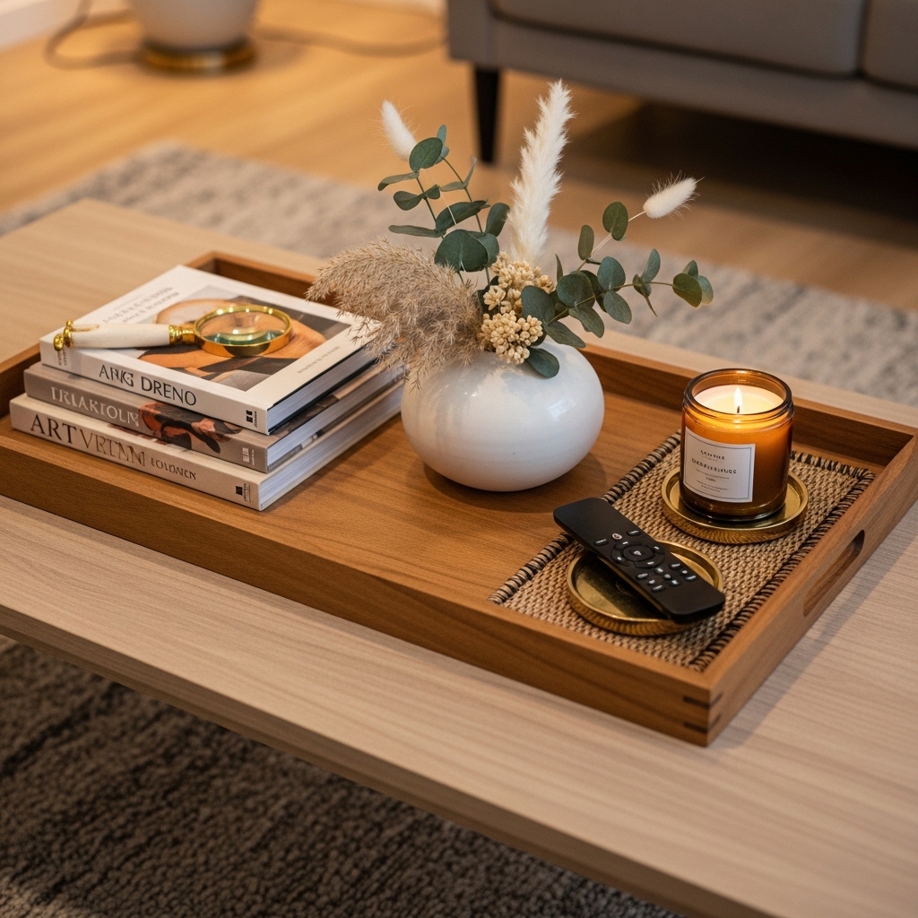 2. Tray-Based Coffee Table Styling for Organized Layout