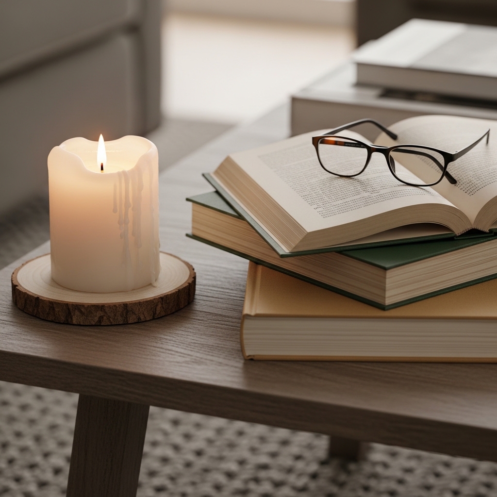 19. Soft Candle + Book Combination for Cozy Simplicity