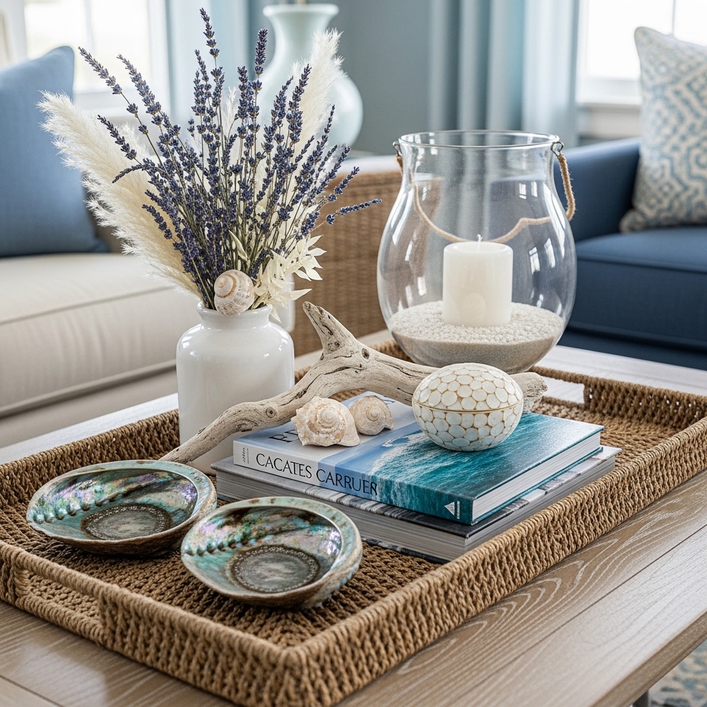 16. Coastal-Themed Coffee Table Setup for Relaxed Vibes