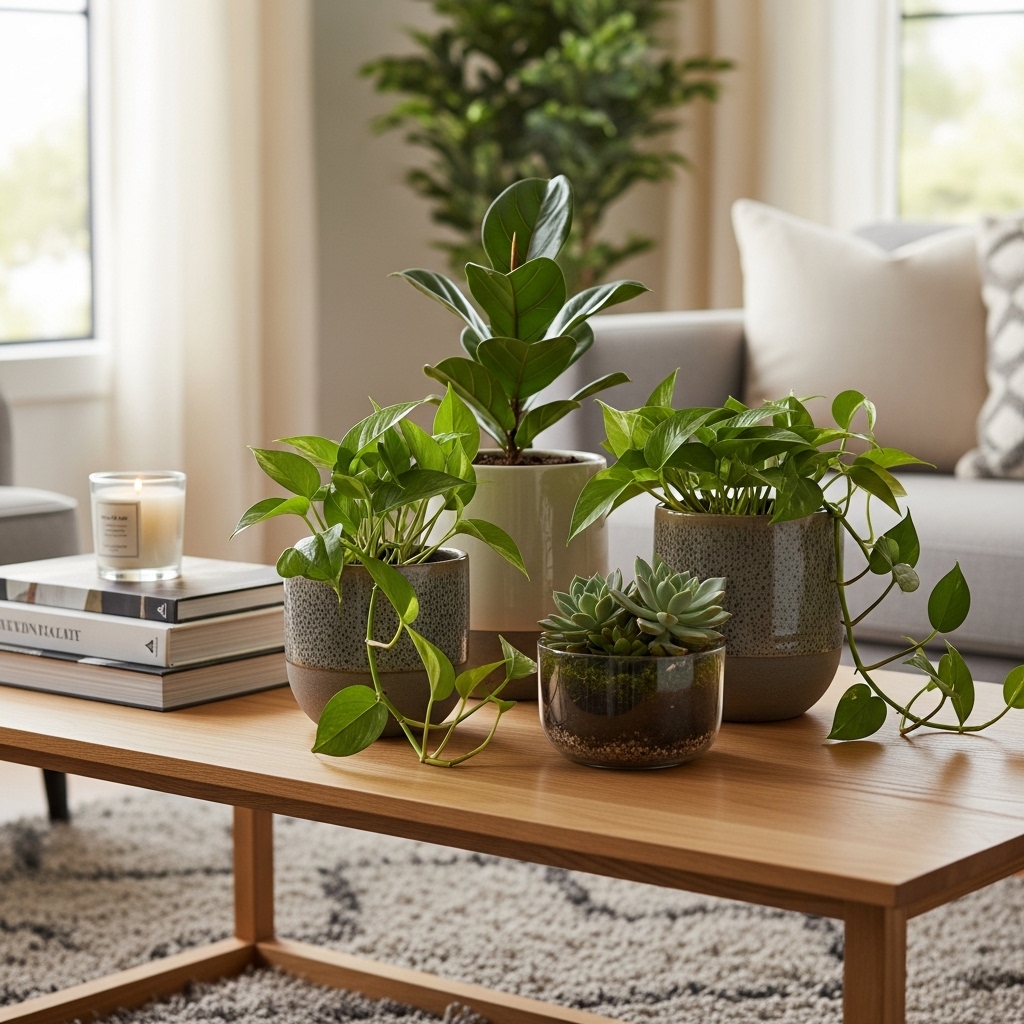 This works because greenery introduces life and movement, softening the hard lines of furniture. It creates a natural focal point without overwhelming the space.