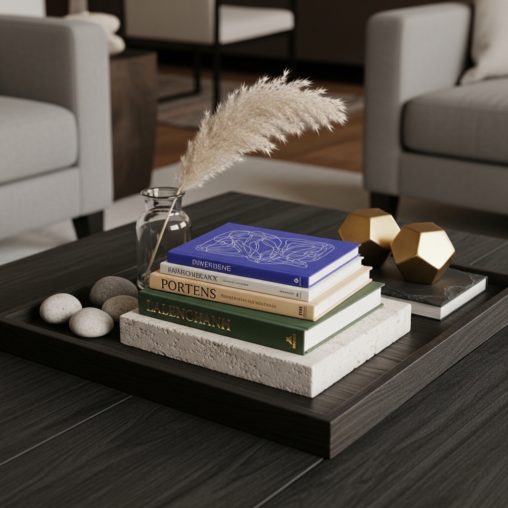 Pro Tip: Use books with matte or textured covers for a refined look.