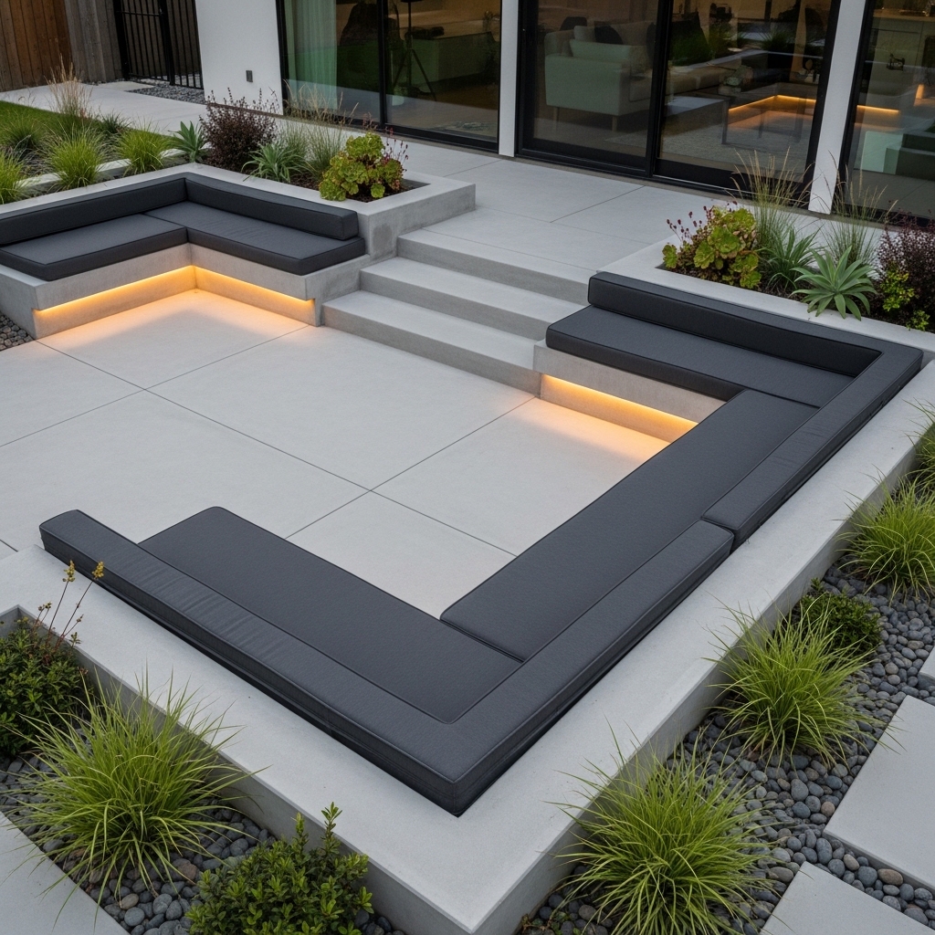 5. Integrate Built-In Seating Directly Into the Concrete Layout