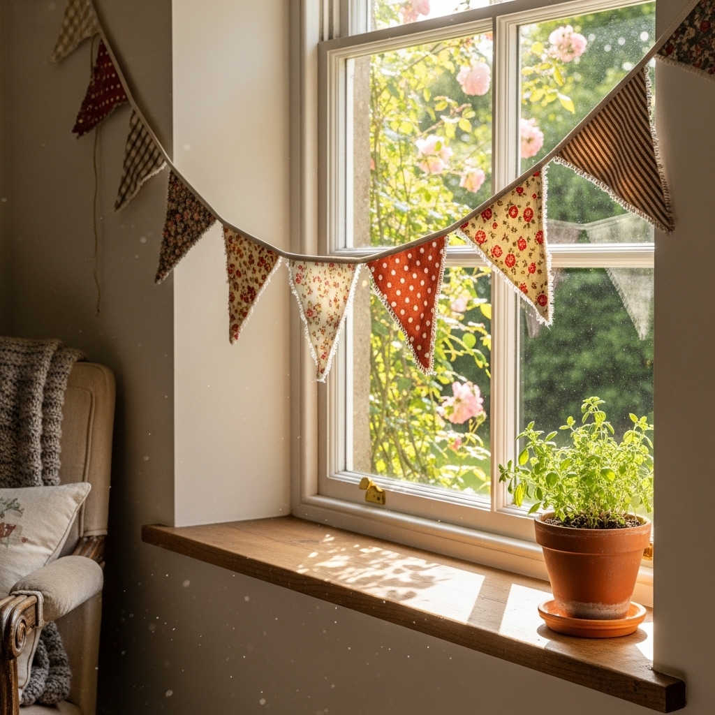 Bunting is festive. Fabric is soft. Together, they are cottage.