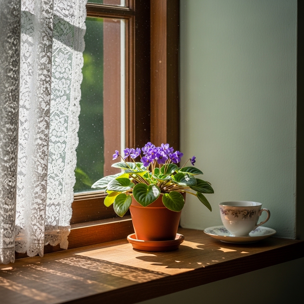 18. Place a Potted Violet on the Windowsill