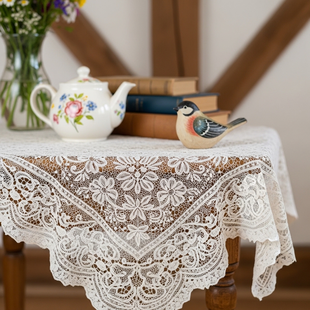 16. Add a Lace Tablecloth to a Side Table