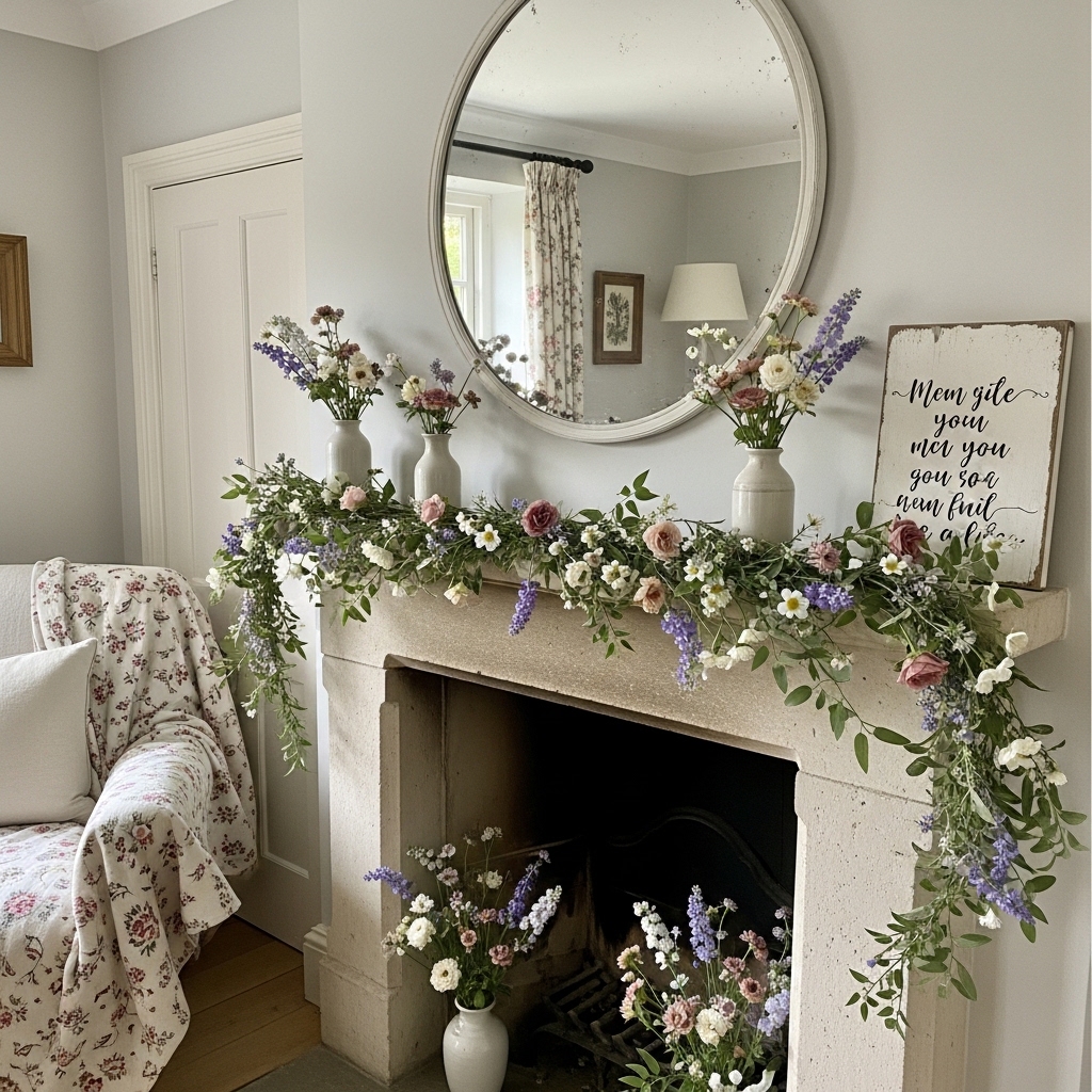 3. Hang a Floral Garland Across the Mantel