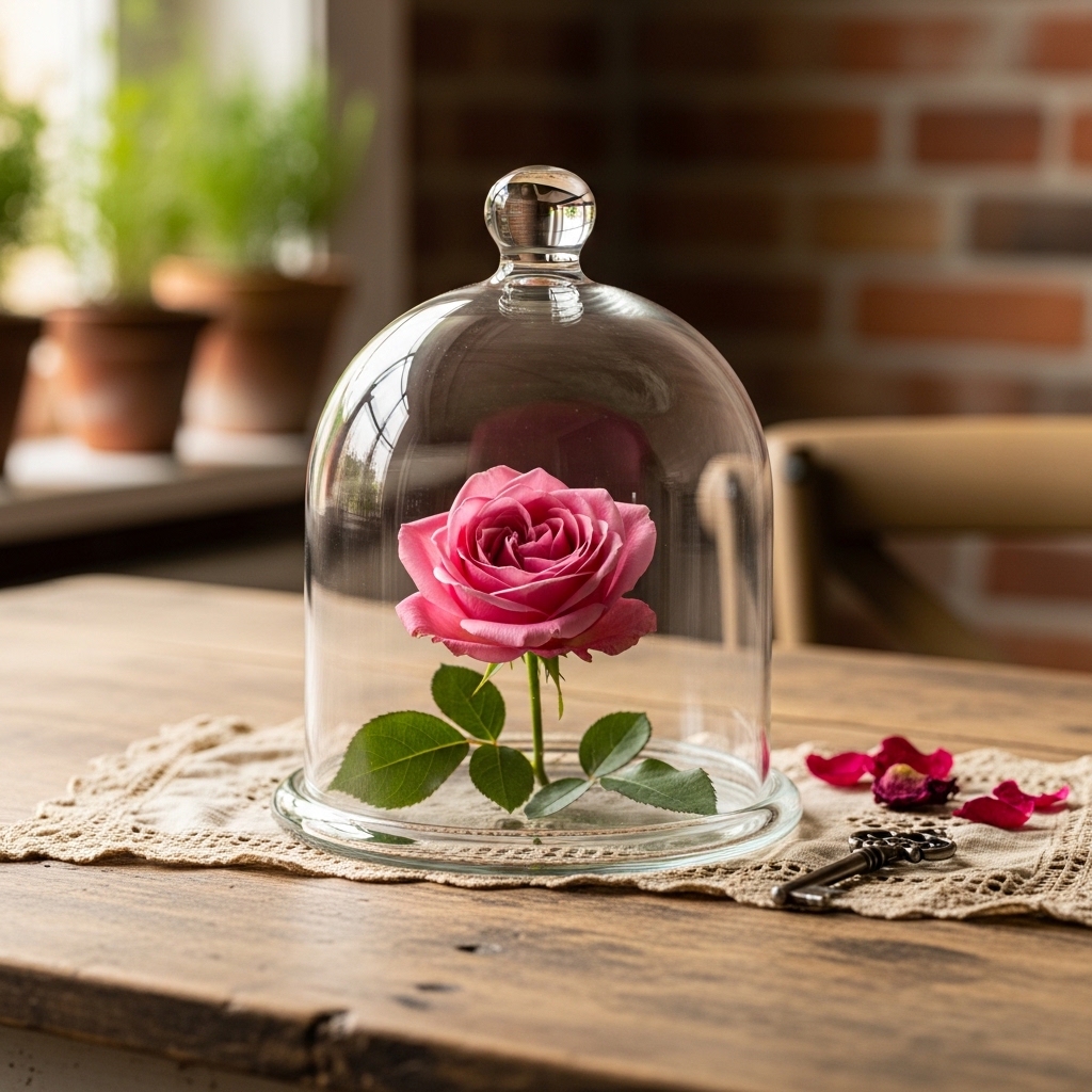 14. Place a Glass Cloche Over a Single Rose